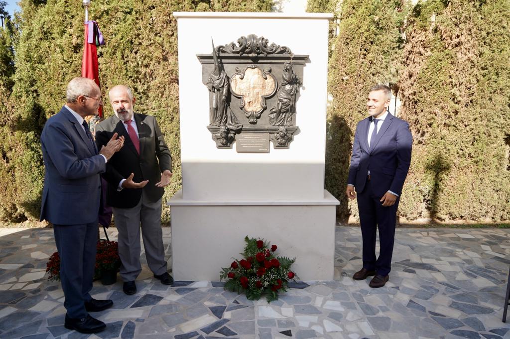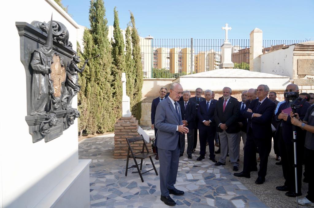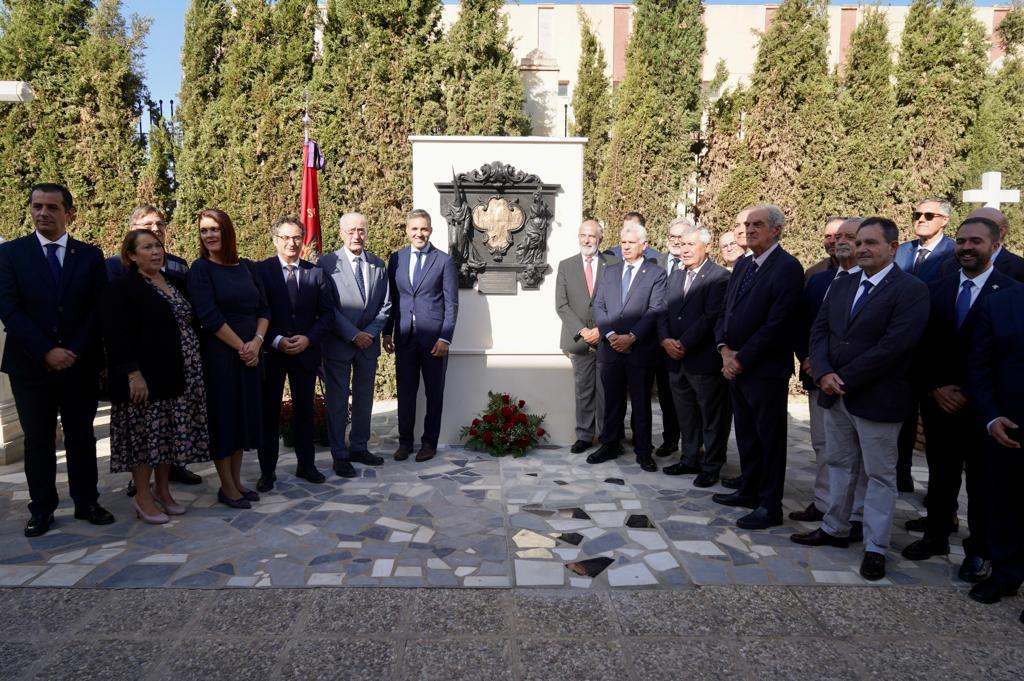 El alcalde de Málaga, Francisco de la Torre, ha participado hoy en el acto de descubrimiento de un bajorrelieve en homenaje al Centenario de la Agrupación de Cofradías de Málaga, en el Cementerio de San Miguel