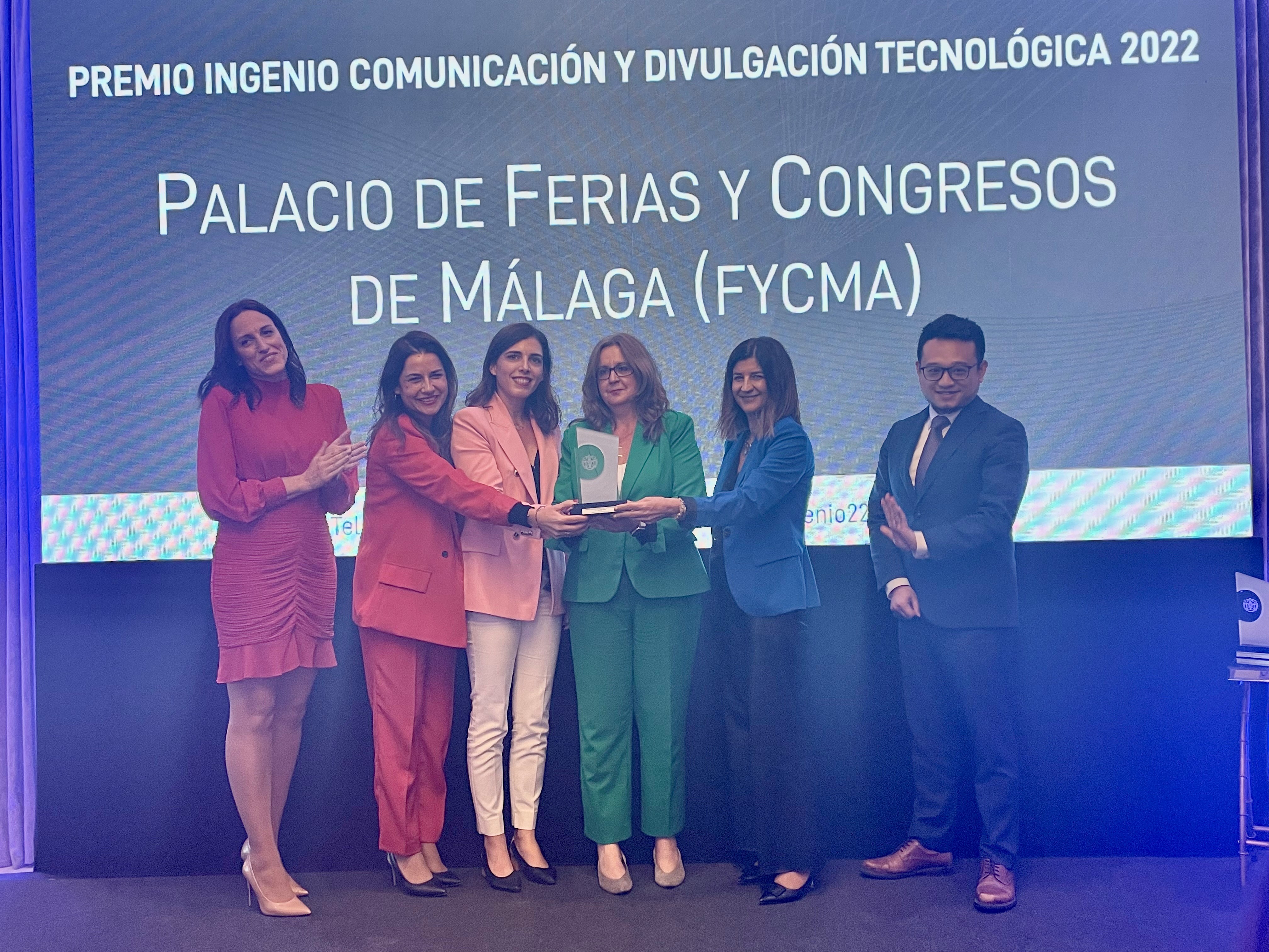FYCMA (Palacio de Ferias y Congresos de Málaga) ha recibido hoy el premio Ingenio Comunicación y Divulgación Tecnológica 2022 otorgado por el Colegio Oficial de Ingenieros Técnicos de Telecomunicación de Andalucía (COITTA) y la Asociación Andaluza de Graduados e Ingenieros Técnicos de Telecomunicación (AAGIT) en el marco del XIV Foro Telecos Andalucía. Dicha distinción reconoce la labor del recinto en la organización y promoción de eventos tecnológicos y reivindica su papel como generador de oportunidades en el ámbito de la innovación y la transformación digital