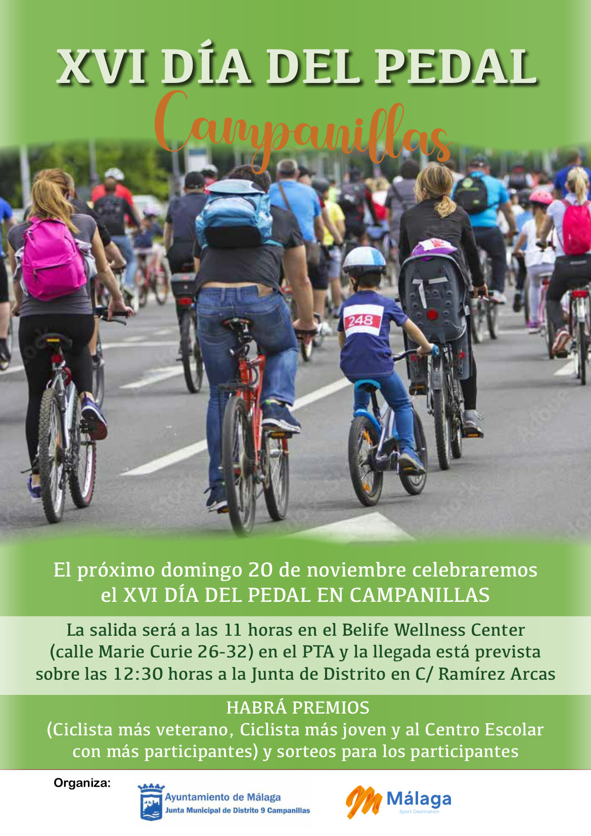 CAMPANILLAS CELEBRA EL DOMINGO 20 DE NOVIEMBRE LA XVI EDICIÓN DEL DÍA DEL PEDAL 16/11/2022 Imagen La inscripción para participar es gratuita y se podrá realizar hasta mañana, 17 de noviembre, en la Junta Municipal de Distrito Documentos CARTEL.pdf 220,68 KB kb NOTA INFORMATIVA.pdf 171,42 KB kb Galería de imágenes