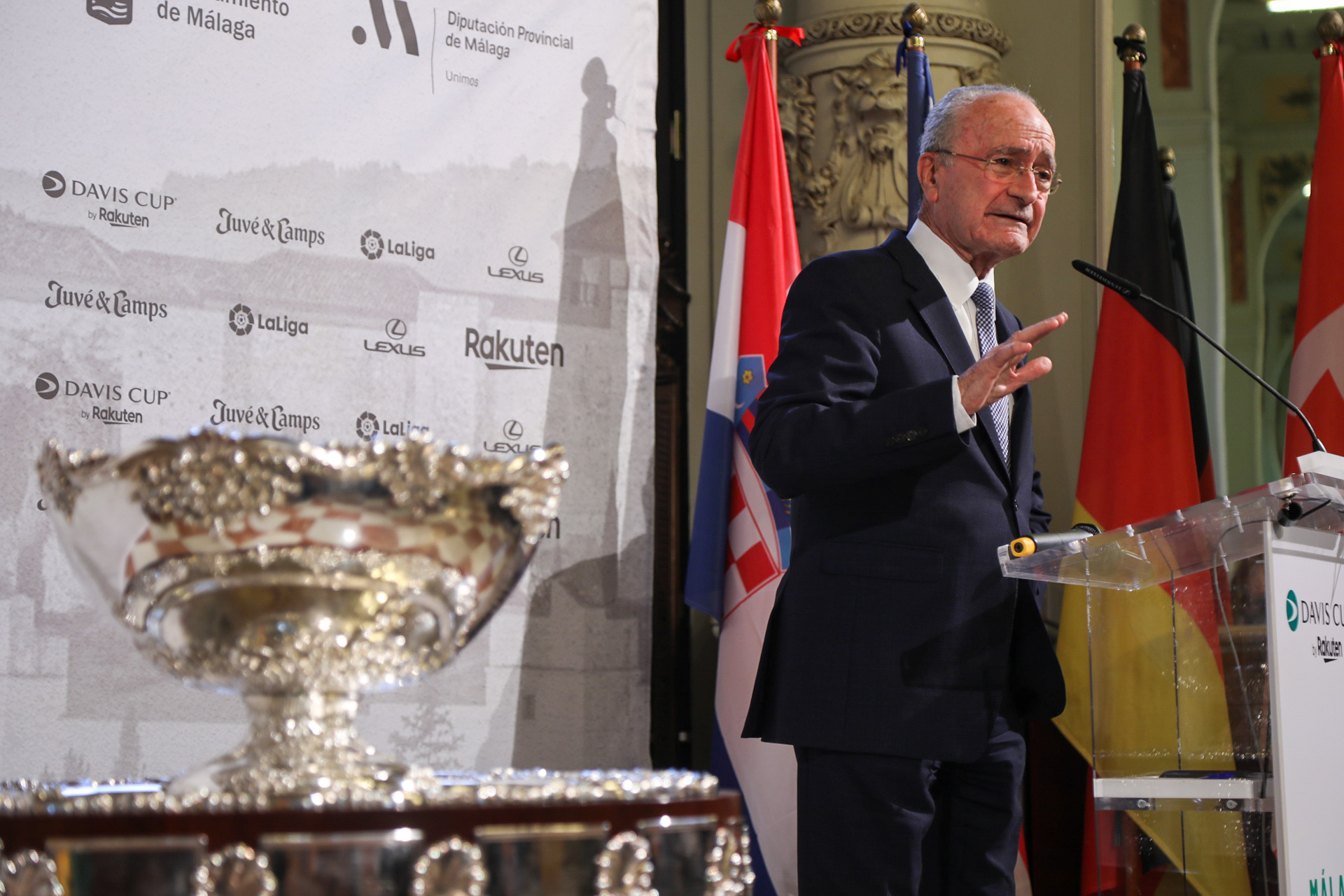 La presentación estuvo presidida por el Alcalde de Málaga, D. Francisco de la Torre quien estuvo acompañado por el Consejero de Turismo, Cultura y Deporte de la Junta de Andalucía, D. Arturo Bernal, y el Presidente de la Diputación de Málaga, D. José Francisco Salado, así como con el director de las Davis Cup Finals, D. David Ferrer y de los jugadores de la selección española Pablo Carreño y Albert Ramos. En el escenario también estuvo la Ensaladera, el emblemático trofeo plata de la competición.