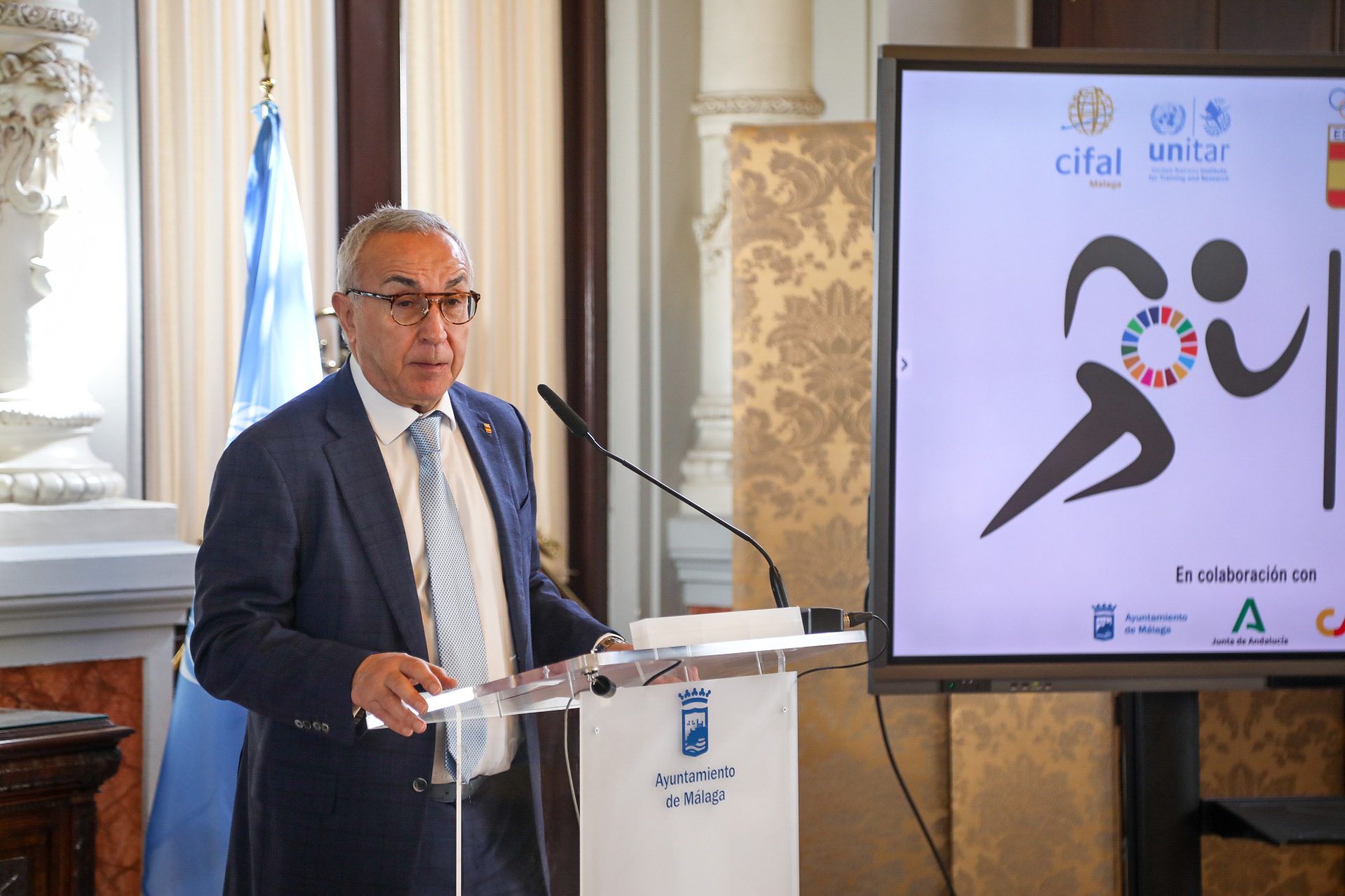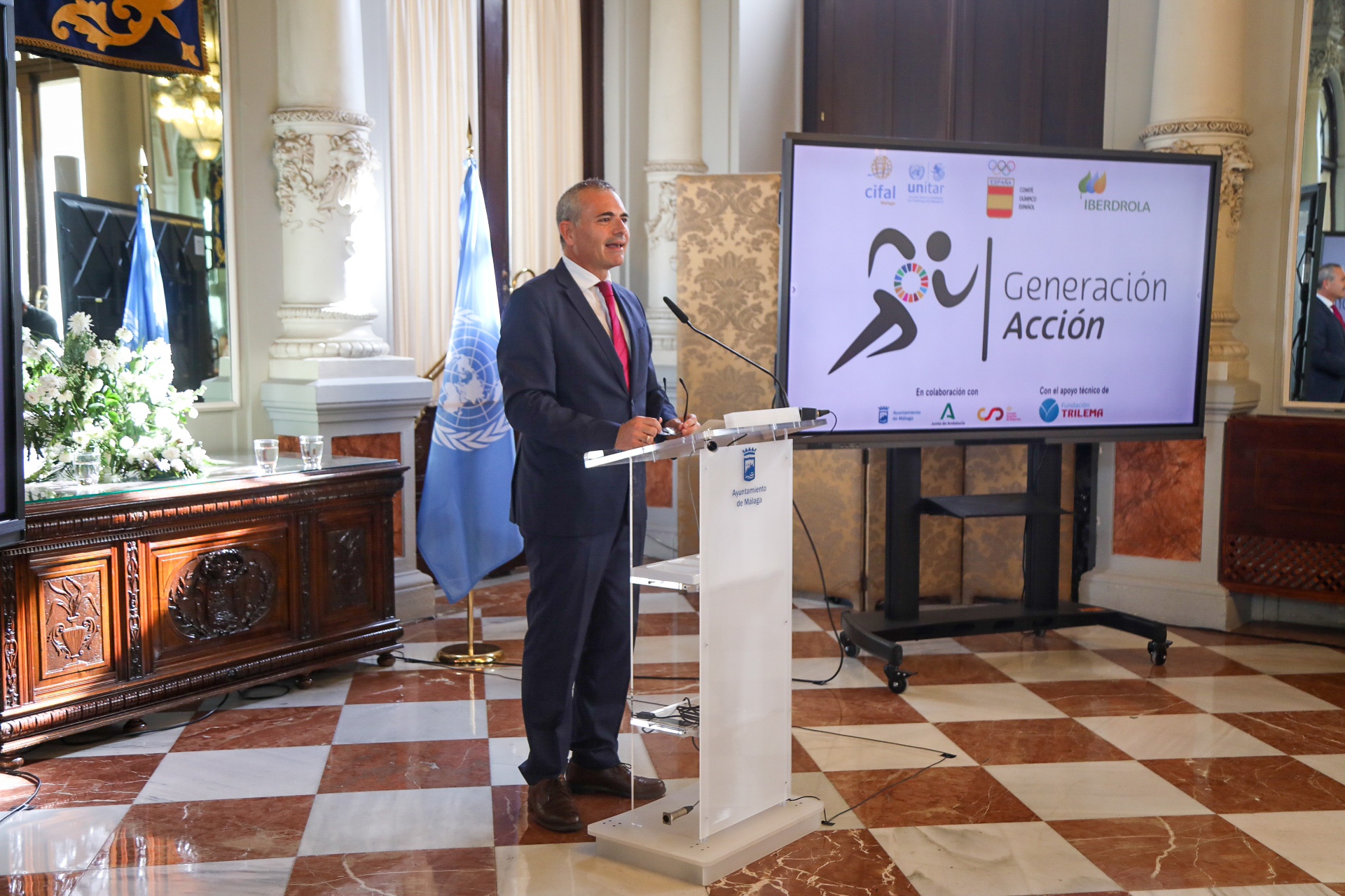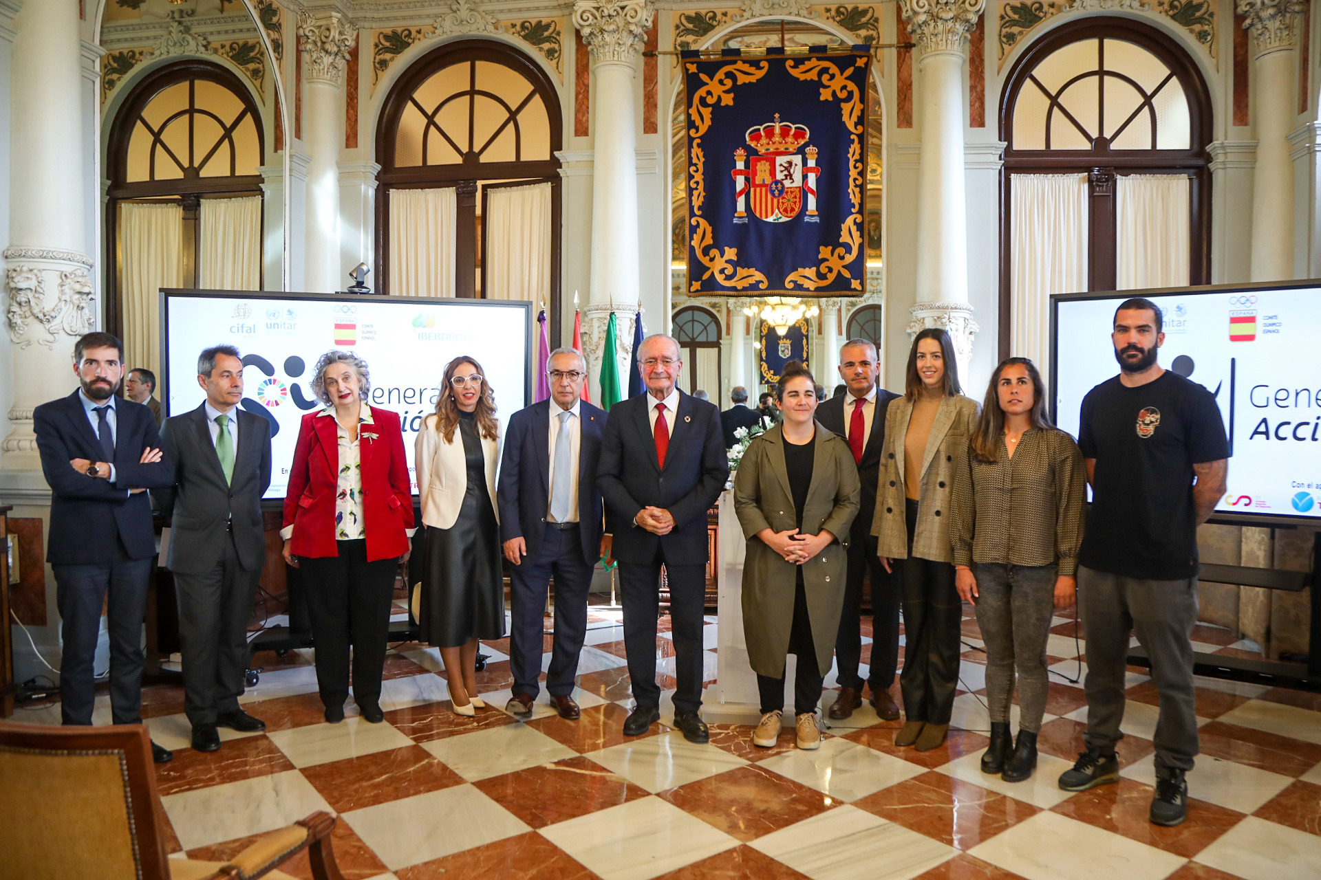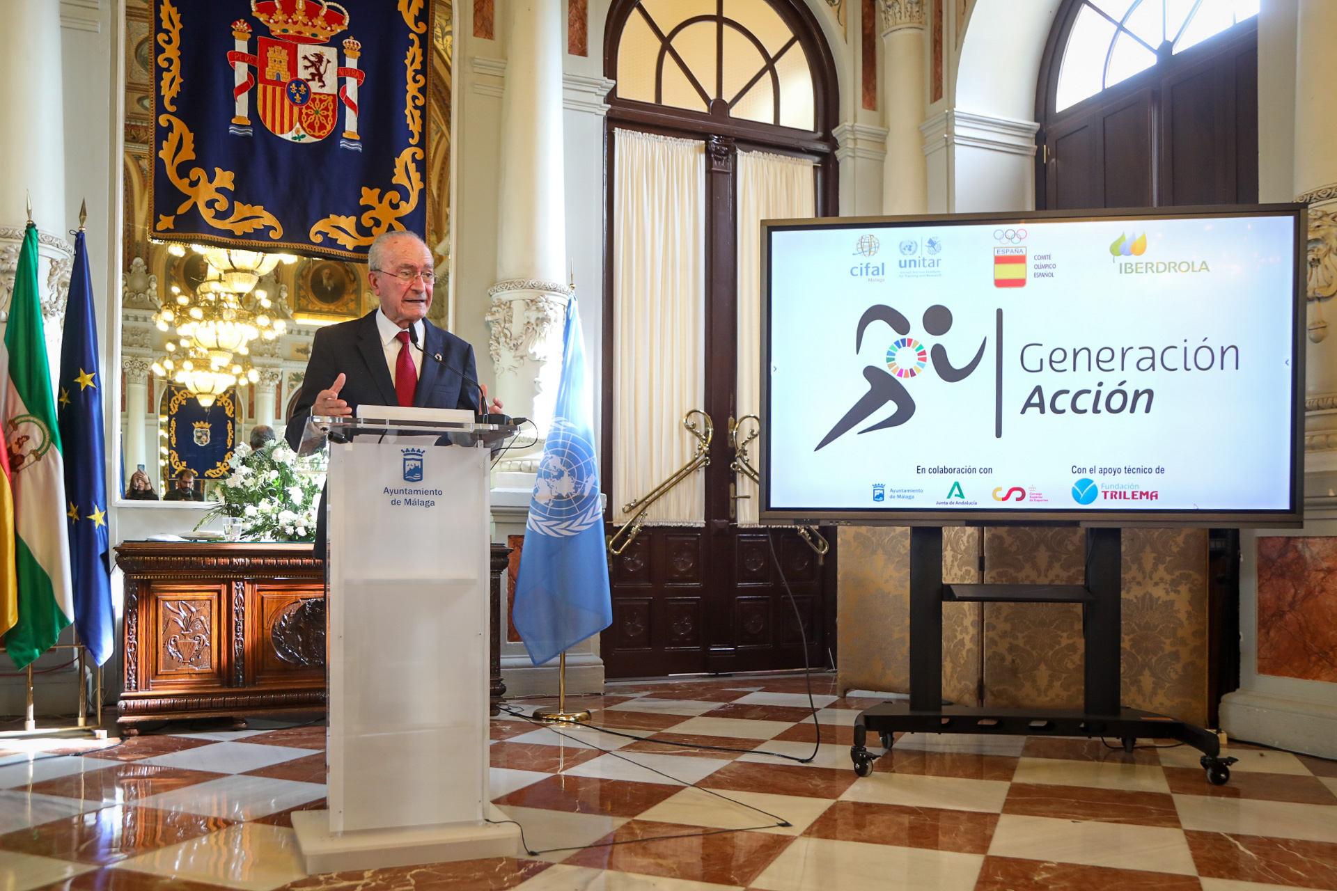 El alcalde de Málaga, Francisco de la Torre, ha asistido este mediodía a la presentación de la aplicación ‘Generación Acción’ en el Salón de los Espejos. ‘Generación Acción’ es un proyecto educativo liderado por CIFAL Málaga y el Comité Olímpico Español para enseñar los Objetivos de Desarrollo Sostenible a través de los valores del deporte a escolares de toda España