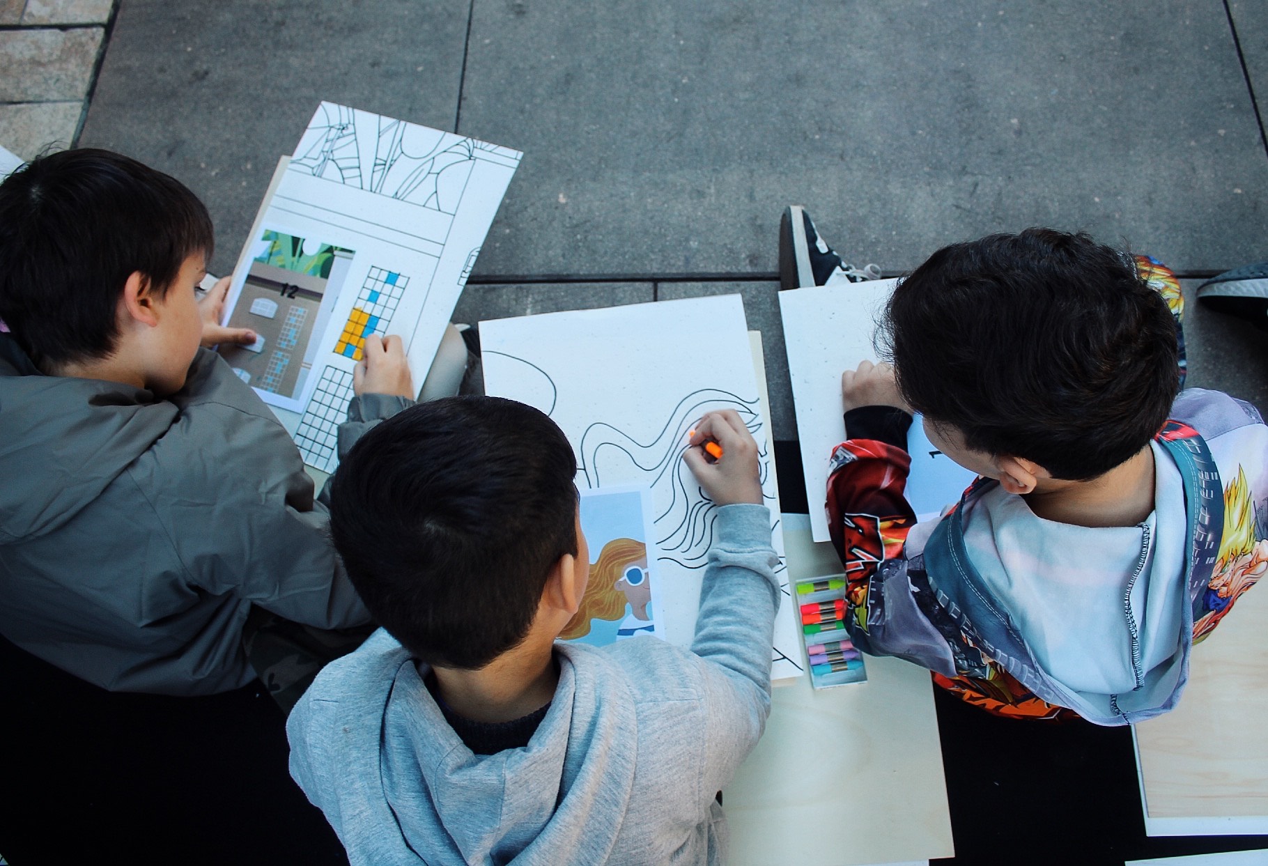 la construcción de un gran mosaico de papel en la Alameda Principal