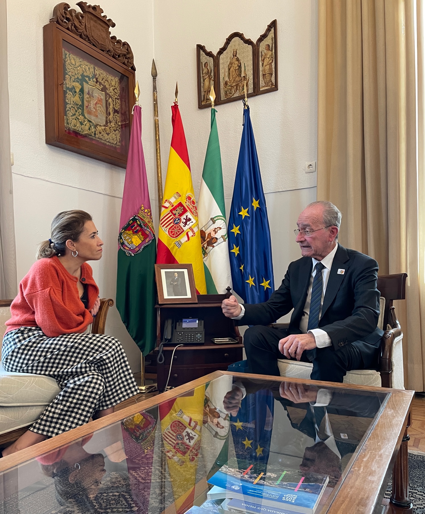 El alcalde de Málaga, Francisco de la Torre, ha mantenido hoy una reunión con la ministra de Transportes, Movilidad y Agenda Urbana, Raquel Sánchez. La ministra ha firmado en el libro de honor de la ciudad antes de llevar a cabo el acto de rúbrica de un protocolo de intenciones relativo a la cesión de suelos para la celebración de la Expo 2027 Málaga, ‘La era urbana: hacia la ciudad sostenible’ a la que aspira la ciudad.