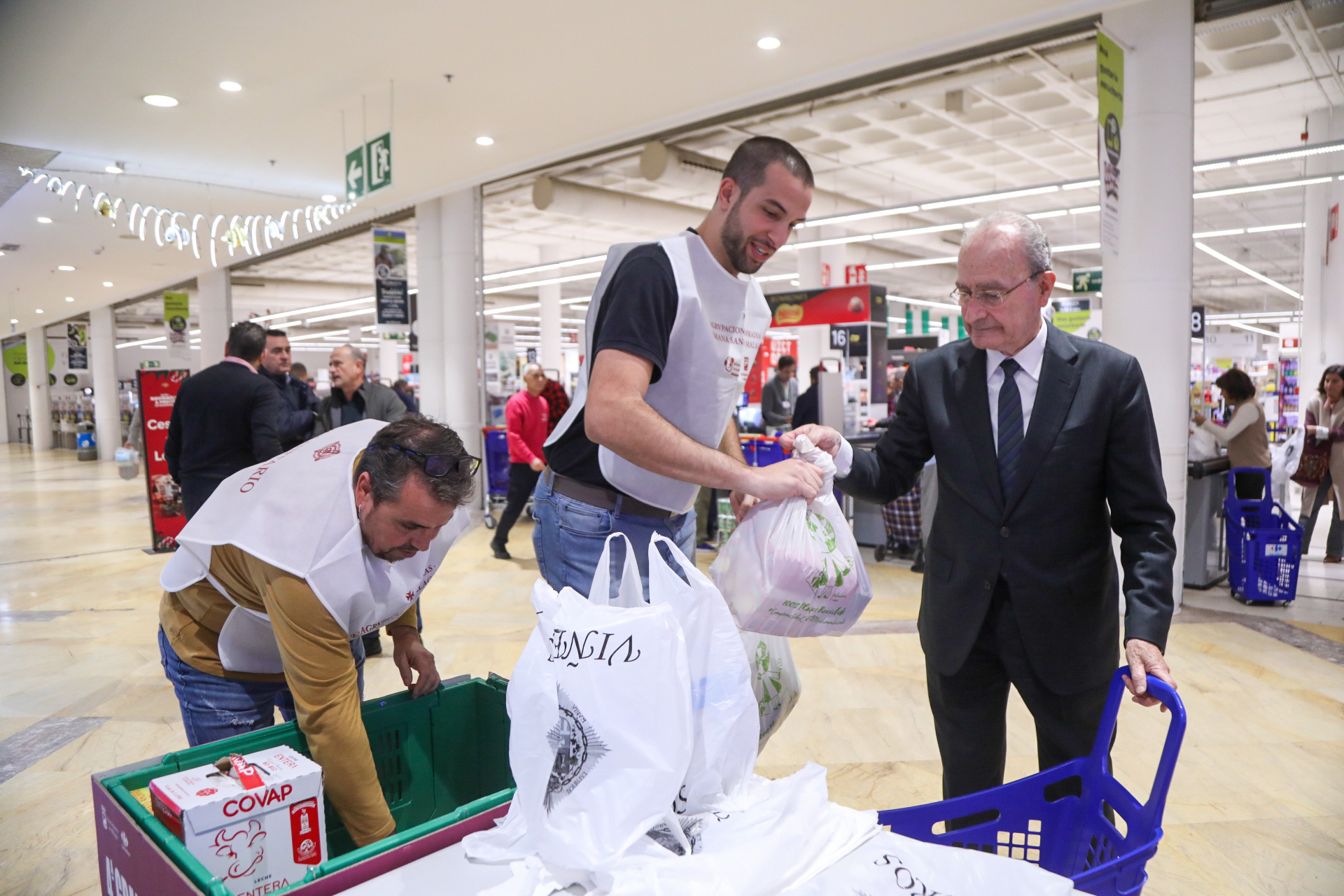 El alcalde de Málaga, Francisco de la Torre, ha participado hoy en la IV Gran Recogida Cofrade a beneficio de la red municipal de reparto de alimentos, junto a los concejales Francisco Pomares y Francisco Cantos. Esta iniciativa se presentó el pasado 10 de noviembre: https://www.malaga.eu/el-ayuntamiento/notas-de-prensa/detalle-de-la-nota-de-prensa/index.html?id=166099 [https://www.malaga.eu/el-ayuntamiento/notas-de-prensa/detalle-de-la-nota-de-prensa/index.html?id=166099]