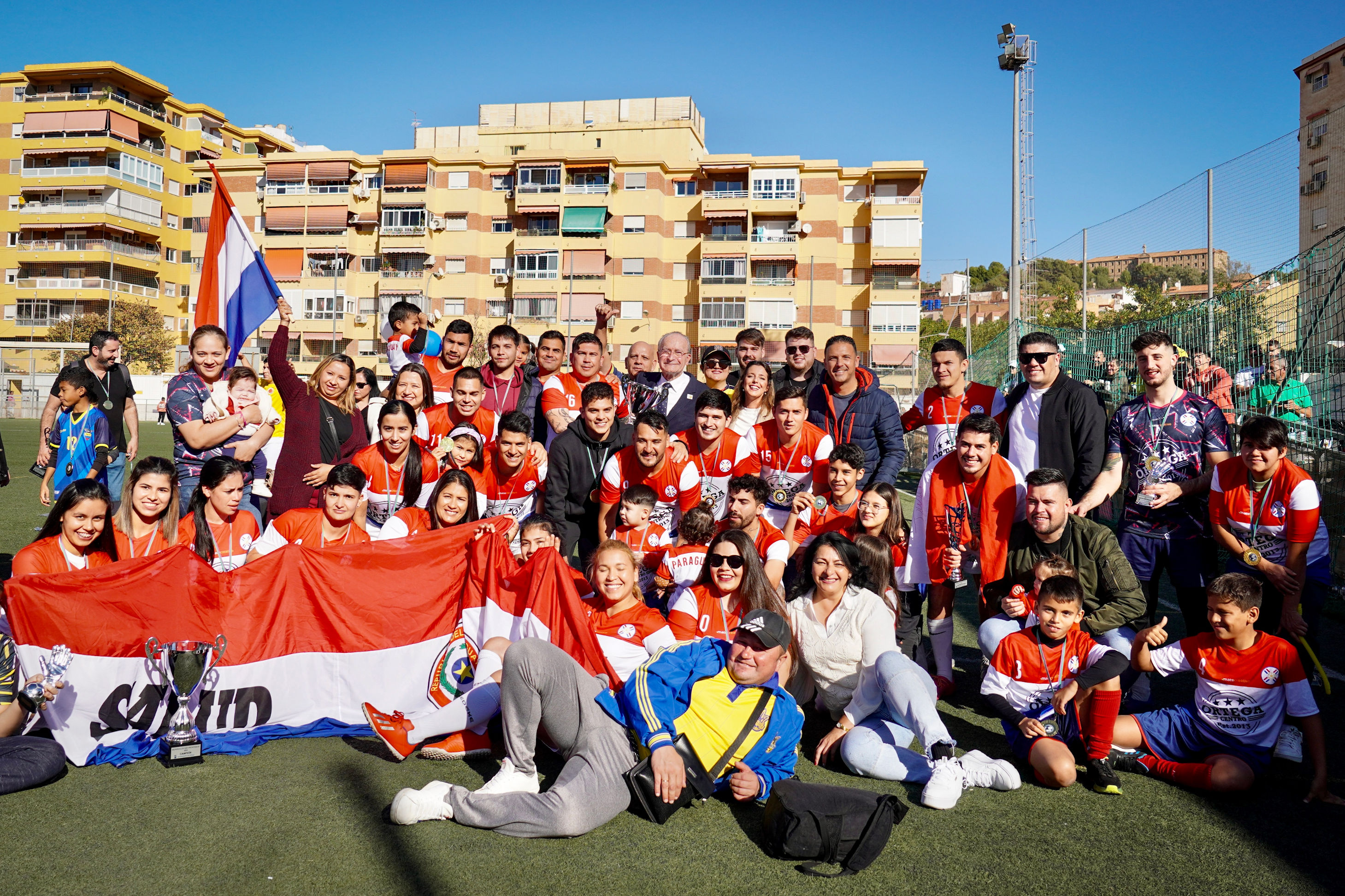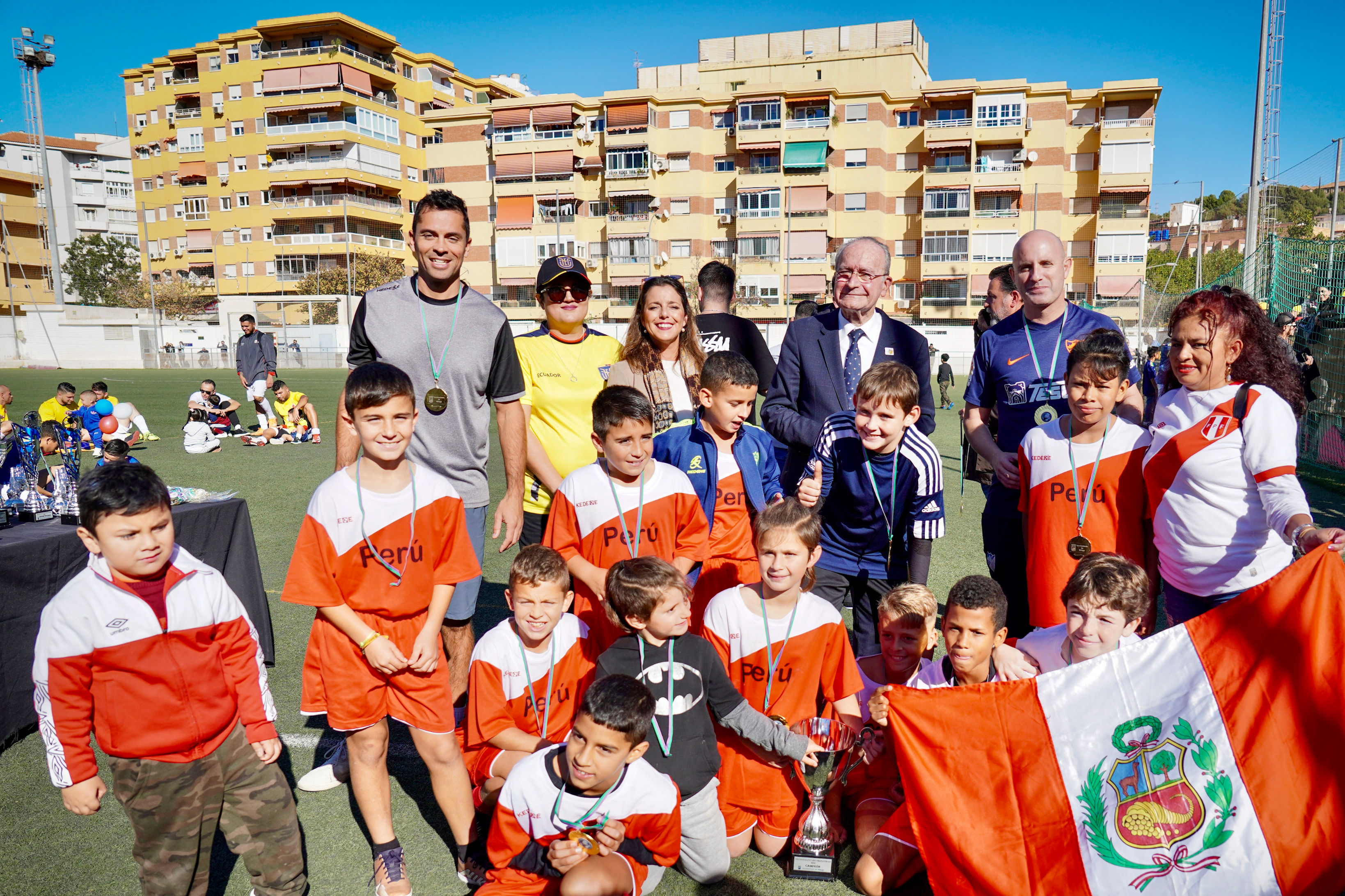 El alcalde de Málaga, Francisco de la Torre, ha participado este mediodía junto a la concejala delegada de Participación Ciudadana, Inmigración y Cooperación al Desarrollo, Mar Torres, en la entrega de trofeos del Mundialito sin Fronteras 2022, organizado por el Ayuntamiento, en el campo de fútbol de la Olímpica Victoriana CF.