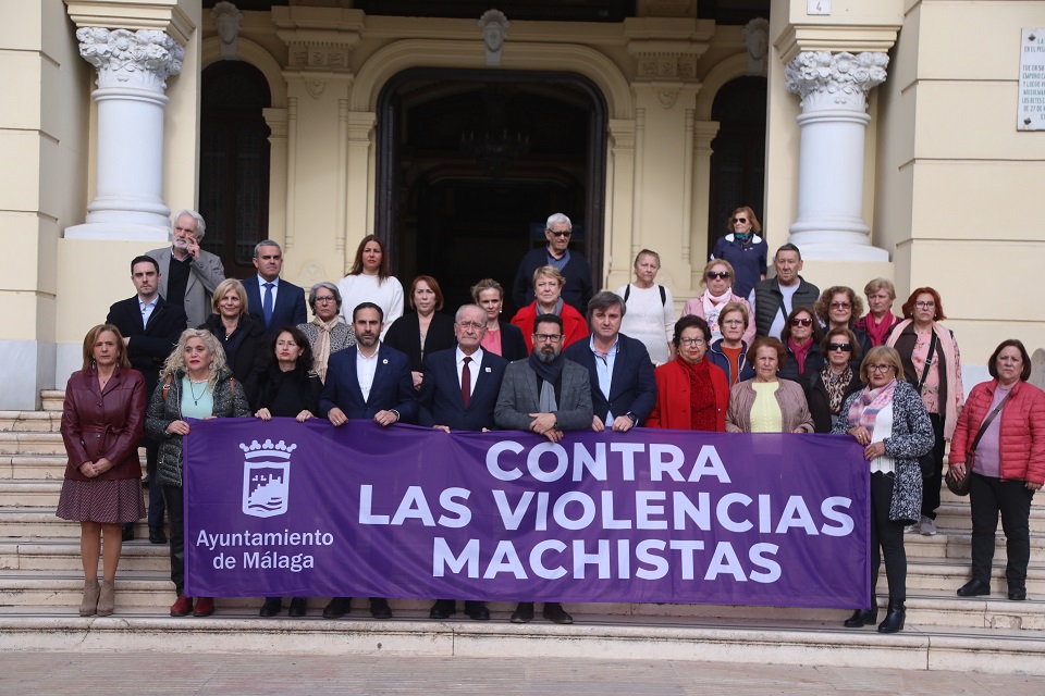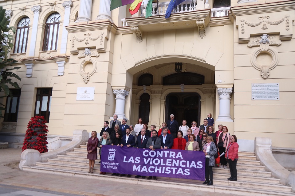 El alcalde de Málaga, Francisco de la Torre, junto a miembros de la Corporación Municipal, ha mantenido tres minutos de silencio en memoria de las últimas víctimas de la violencia de género confirmadas, tres mujeres asesinadas el pasado 28 de diciembre en Madrid, Toledo y Vizcaya, respectivamente. El acto ha tenido lugar hoy miércoles 4 de enero en el Ayuntamiento de Málaga.