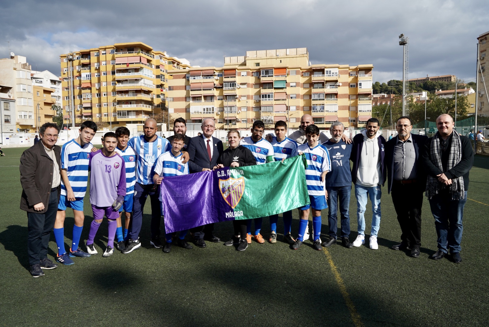 El alcalde de Málaga, Francisco de la Torre, acompañado por el concejal del distrito Centro, Francisco Cantos, ha asistido esta mañana al inicio del I Torneo Benéfico ‘Yo boquerón y tú’, junto con representantes de la asociación Superhéroes ‘Un niño, una sonrisa’, asociación de vecinos Victoriana de Capuchinos y asociación Lagunillas-Cruz Verde. Este torneo benéfico se celebra los días 4, 7 y 8 de enero, en el campo de fútbol Peñarroya-Olímpica Victoriana.