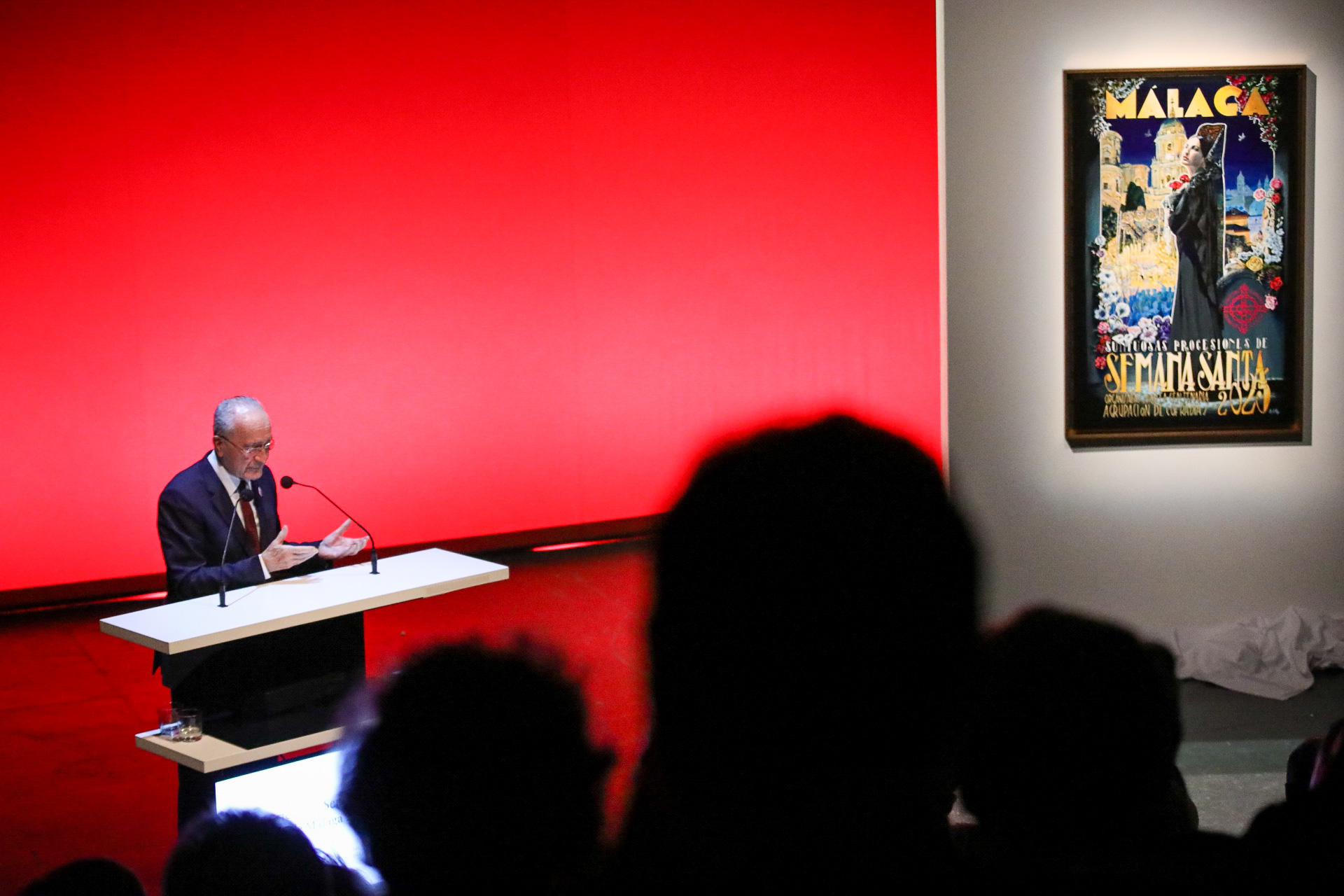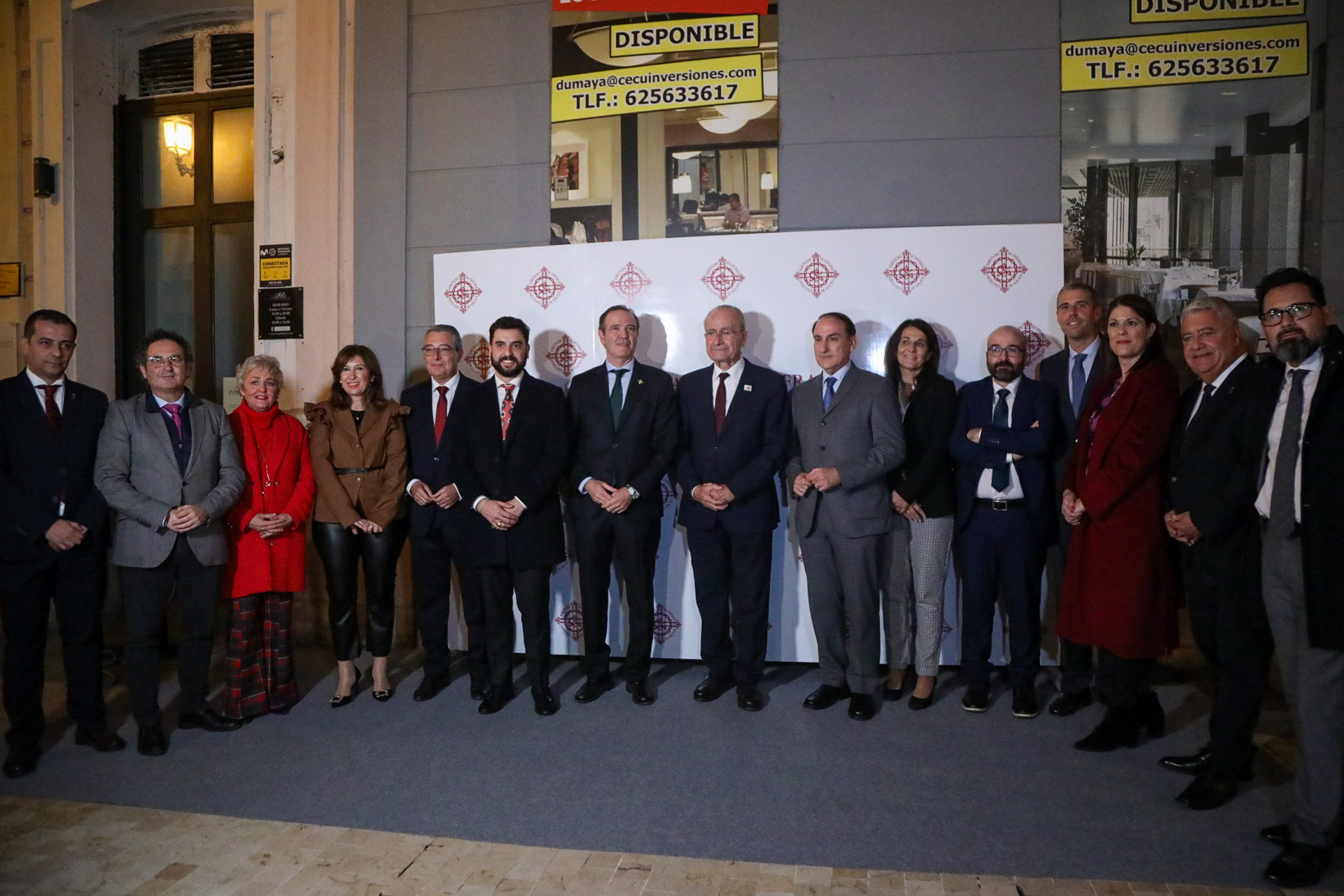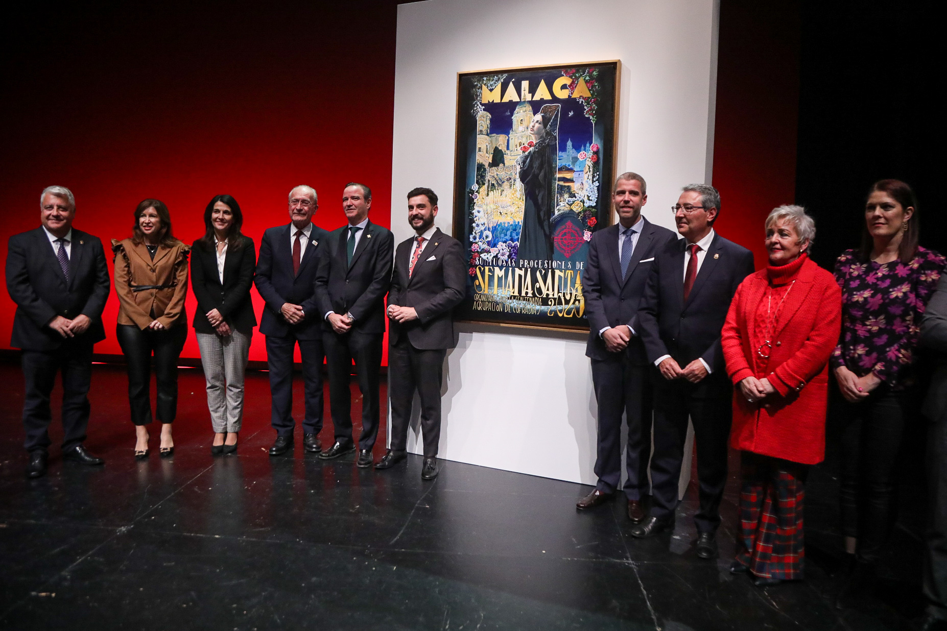 El alcalde de Málaga, ha asistido, junto al presidente de la Agrupacion de Cofradías, Pablo Atencia, la concejala de Fiestas, Teresa Porras, y demás miembros de la Corporación municipal a la presentación del cartel de la Semana Santa 2023, obra de Pablo Cortés del Pueblo. El acto ha tenido lugar en el Teatro Echegaray.