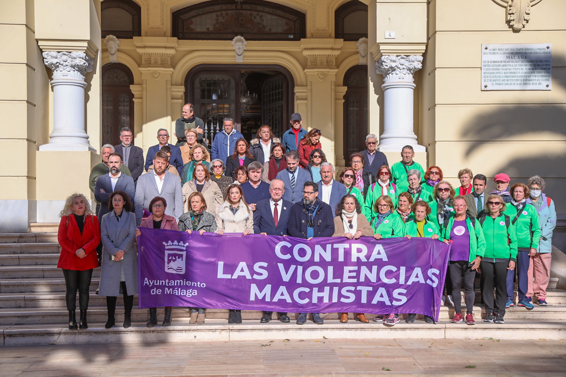El alcalde de Málaga, Francisco de la Torre, junto a miembros de la Corporación Municipal, mantiene un minuto de silencio en memoria de la última víctima de la violencia de género confirmada, mujer asesinada en la provincia de Málaga el pasado 8 de enero. El acto ha tenido lugar hoy lunes, 16 de enero, en el Ayuntamiento de Málaga.