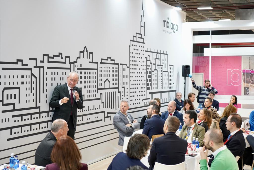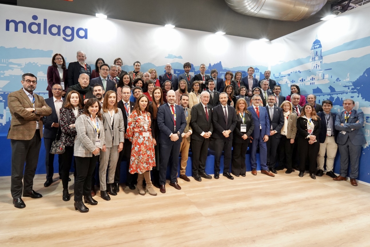 El alcalde de Málaga, Francisco de la Torre, junto con el concejal de Turismo, Jacobo Florido, y la concejala de Promoción de la Ciudad y Captación de Inversiones, Rosa Sánchez, ha recibido en el expositor de Málaga en Fitur 2023 al director general de Turespaña, Miguel Sanz y a los 33 consejeros de las Oficinas Españolas de Turismo en el Extranjero de Turespaña (OETs) de todo el mundo, en el transcurso de un encuentro de trabajo.