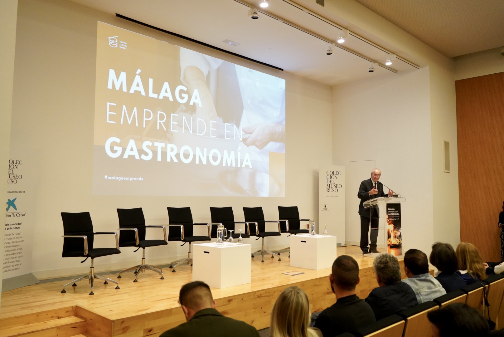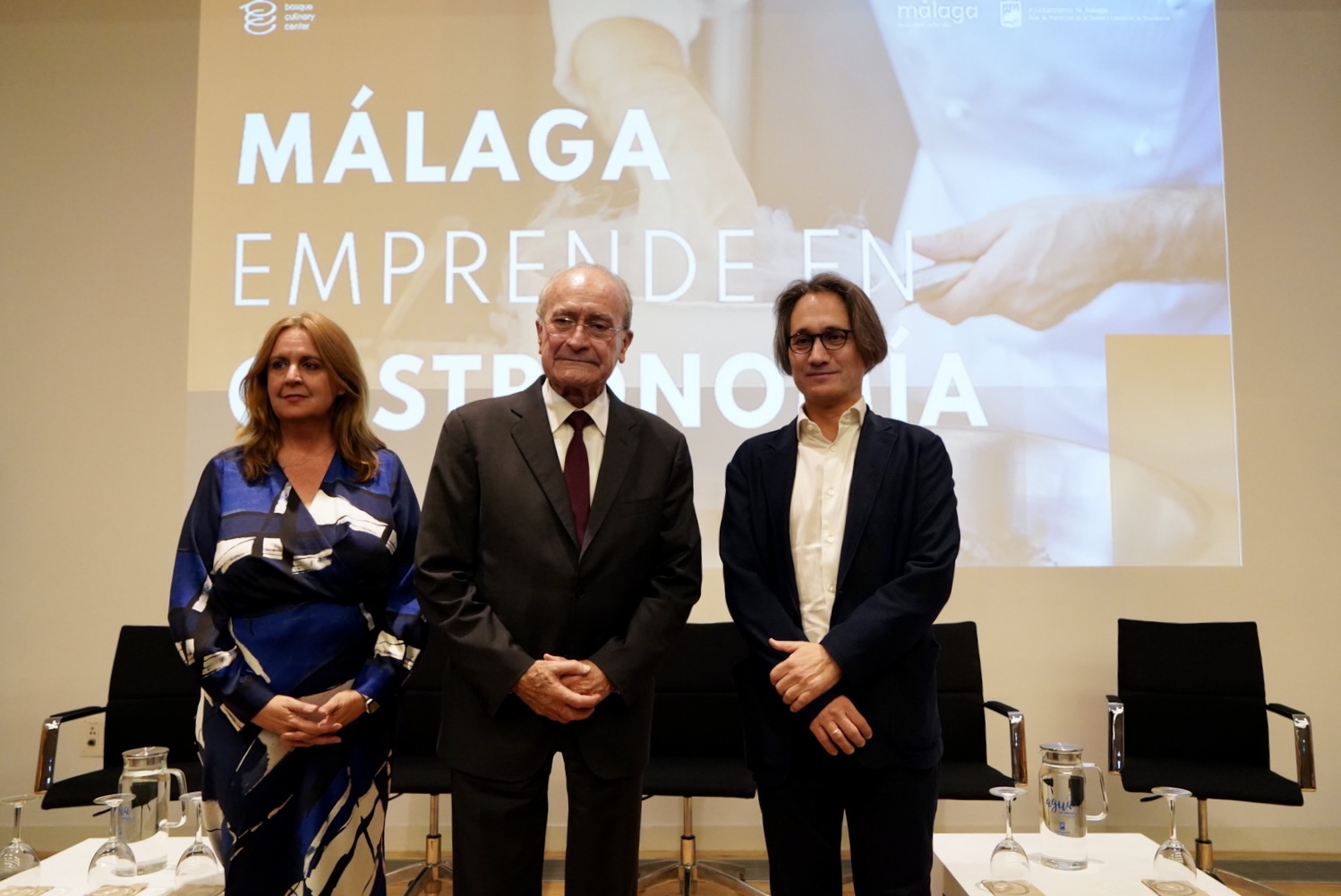El alcalde de Málaga, Francisco de la Torre, junto a la concejala de Promoción de la Ciudad y Captación de Inversiones, Rosa Sánchez, y el director de Desarrollo Global de Basque Culinary Center, Asier Alea, ha asistido esta tarde a la jornada ‘Málaga emprende en gastronomía’, organizada por Basque Culinary Center junto con el Ayuntamiento de Málaga. Este encuentro, celebrado en el auditorio de la Colección del Museo Ruso en Málaga, tiene como objetivo dar visibilidad y analizar el emprendimiento gastronómico que se está desarrollando en los últimos años y de forma creciente en la provincia de Málaga. El evento, como indican desde la organización, reúne a diferentes perfiles del sector, desde chefs con estrellas Michelin que llevan años defendiendo negocios de alta cocina, a jóvenes emprendedores y emprendedoras al frente de sus propios proyectos bajo diferentes conceptos y productores que ponen en valor materias primas emblemáticas de la cultura culinaria de Málaga. La jornada contempla la participación de Dani Carnero (La Cosmopolita, Kaleja y La Cosmo), Miriam Gálvez (Caprisur), Paco García (Calma Eladio), Cristina Cánovas y Diego Aguilar (Palodú), Nicolás Samoza (Da-Re), Juanma Alba y Ana Bermúdez (Hermanos Alba), José Carlos García (José Carlos García), Mario Cachinero (Skina) y Fernando Alcalá (Kava). Loleta Bernabé presenta el evento.
