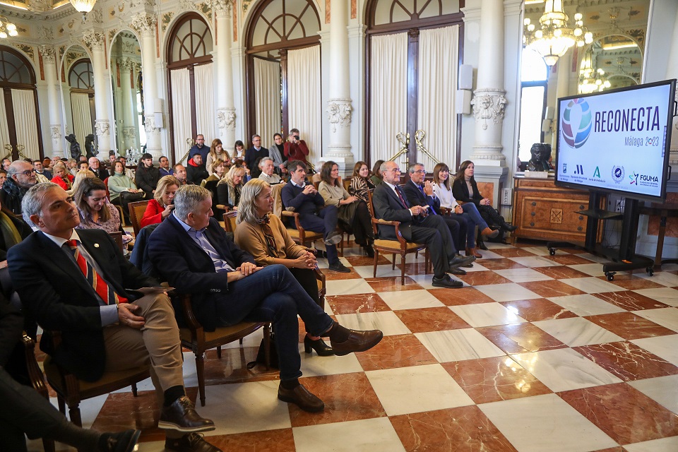 El alcalde de Málaga, Francisco de la Torre, ha dado la bienvenida en el Salón de los Espejos del Ayuntamiento a los participantes en la jornada inaugural del evento Reconecta 2023, junto al organizador del evento, Rafael Senén. Las jornadas celebran en Málaga los días 9,10 y 11 de febrero. En el acto ha estado acompañado del presidente de la Diputación, Francisco Salado, la delegada de Inclusión Social, Juventud, Familias e Igualdad de la Junta de Andalucía, Ruth Sarabia, la directora Académica de la Fundación General de la Fundación General de la UMA, Mar Soto, la concejala de Participación y Acción Exterior. Mar Torres, y el director de Cifal Málaga, Julio Andrade, entre otros. Reconecta 2023 reúne a expertos nacionales e internacionales durante tres jornadas en las que analizarán, desde distintas perspectivas, la importancia de reconectar con nosotros mismos, con los demás y con la naturaleza, en el camino de crear una sociedad más feliz.