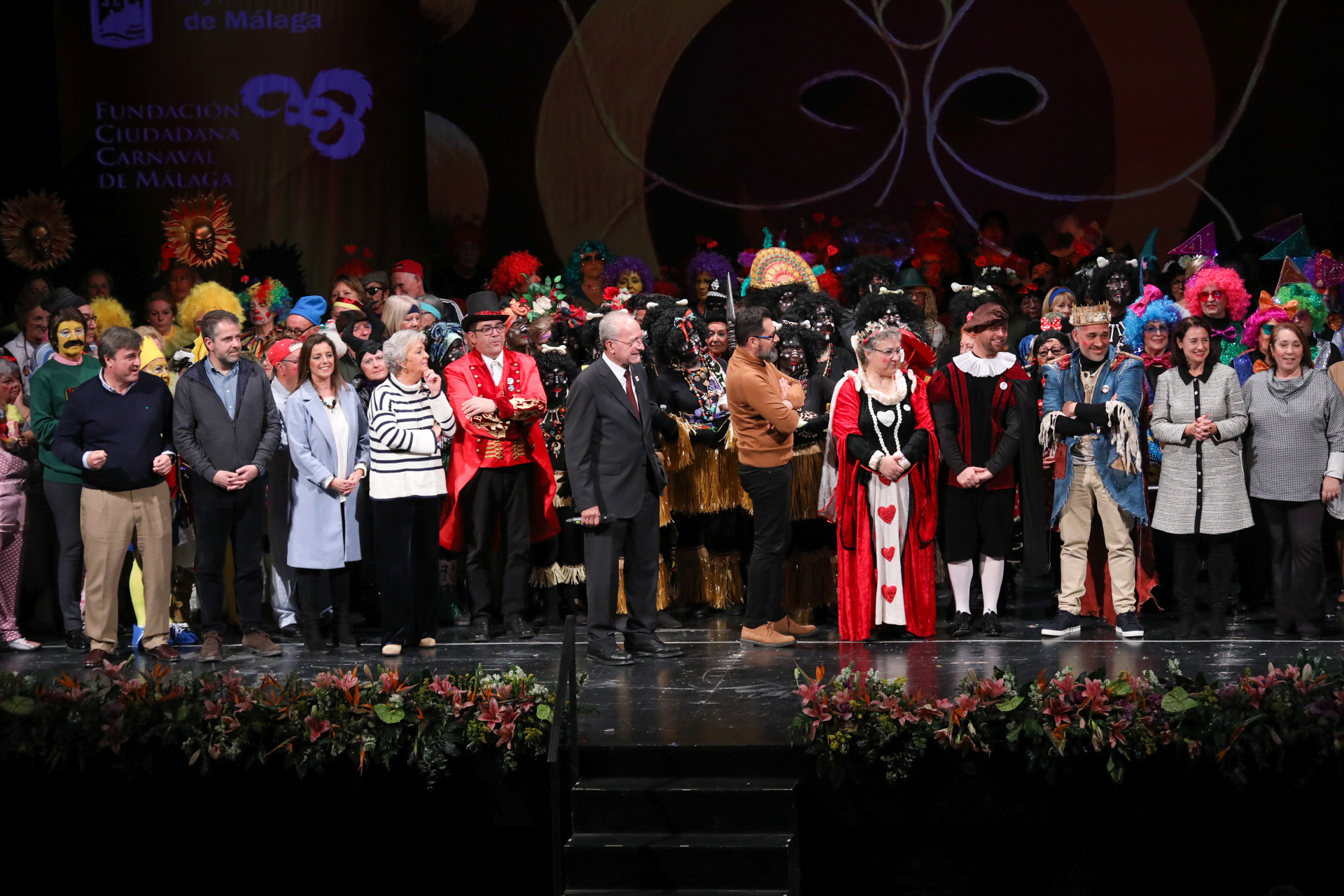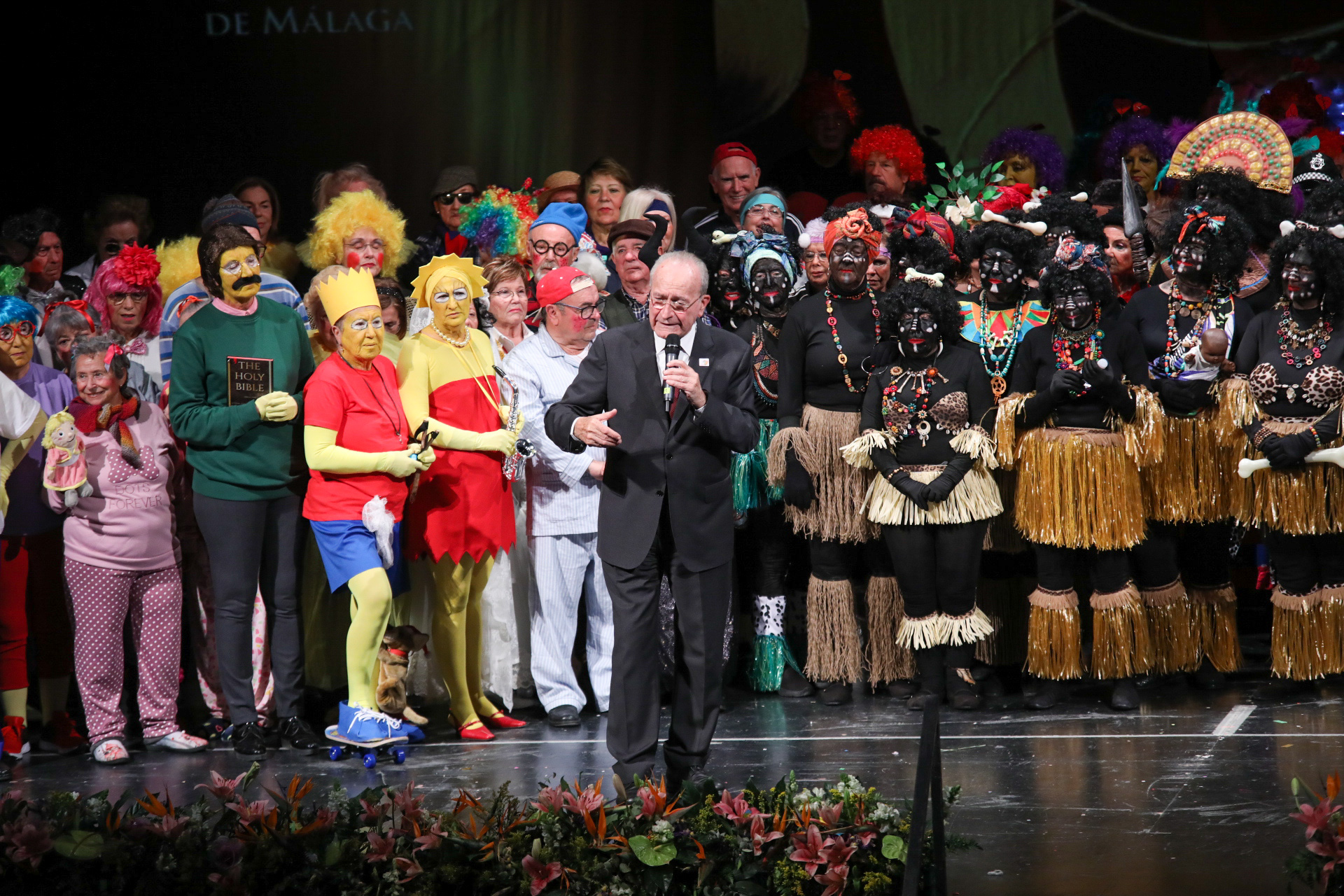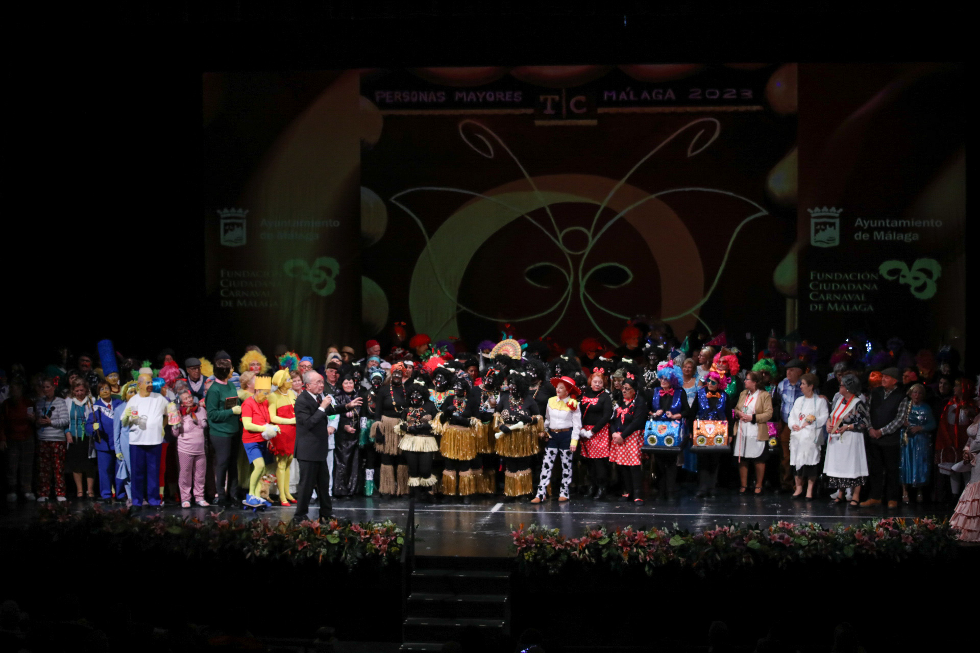 El alcalde de Málaga, Francisco de la Torre, ha participado esta tarde junto al concejal delegado de Derechos Sociales, Francisco Pomares, y otros ediles de la Corporación municipal, en la gala final del Carnaval de las Personas Mayores que se está celebrando en el Teatro Cervantes.