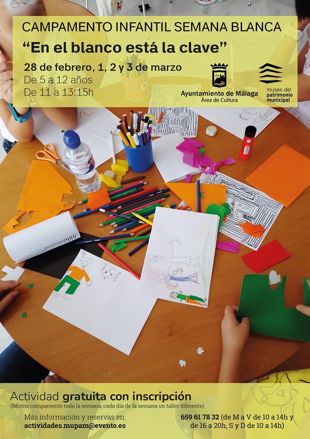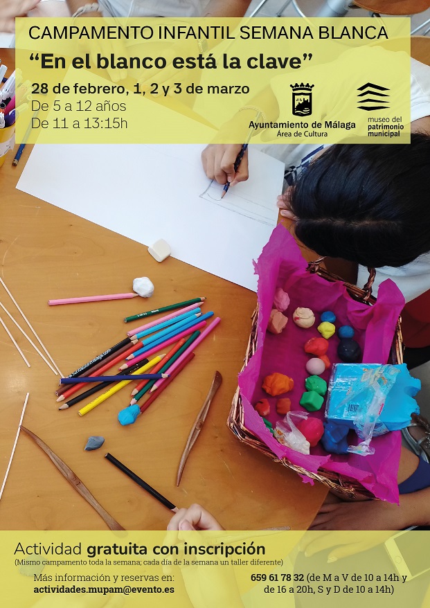 ‘EN EL BLANCO ESTÁ LA CLAVE’, CAMPAMENTO INFANTIL PARA LAS PRÓXIMAS VACACIONES ESCOLARES EN EL MUPAM 14/2/2023 Imagen Talleres gratuitos para niños y niñas de 5 a 12 años para un mes de febrero repleto de propuestas familiares de carácter gratuito Documentos NOTA INFORMATIVA.pdf 370,33 KB kb Galería de imágenes