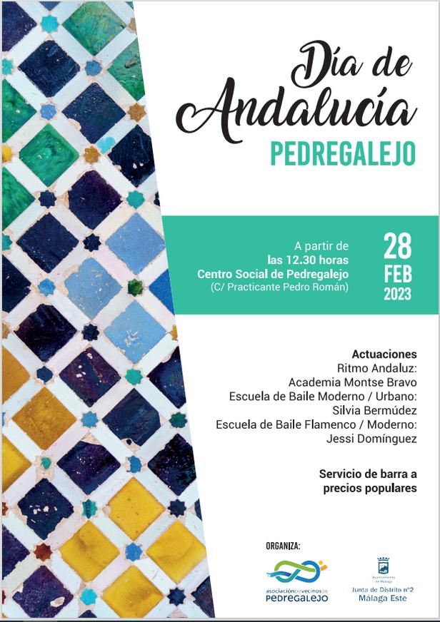 EL DISTRITO DE MÁLAGA ESTE CELEBRA DIVERSOS ACTOS CON MOTIVO DEL DÍA DE ANDALUCÍA 24/2/2023 Imagen Las barriadas de Jarazmín, Pedregalejo y La Mosca celebrarán jornadas con actuaciones musicales y actividades tradicionales Documentos NOTA INFORMATIVA.pdf 340,65 KB kb Galería de imágenes