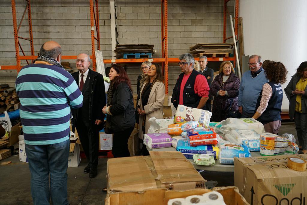 El alcalde de Málaga ha visitado esta tarde la nave donde se almacena la ayuda humanitaria para enviar a los afectados por el terremoto de Turquía y Siria.