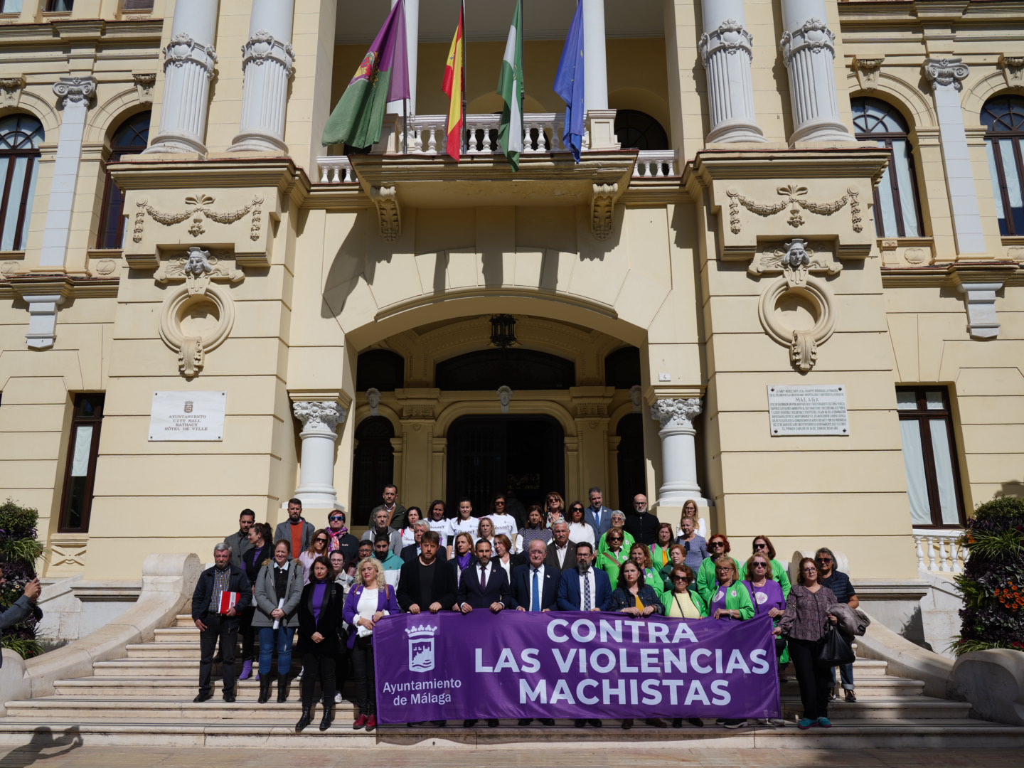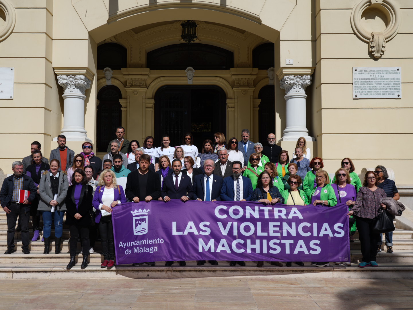 El alcalde de Málaga, Francisco de la Torre, junto a miembros de la Corporación Municipal han mantenido un minuto de silencio en memoria de la última víctima de la violencia de género confirmada, mujer asesinada en Zaragoza el 3 de marzo. El acto ha tenido lugar hoy miércoles, 8 de marzo, en el Ayuntamiento de Málaga.