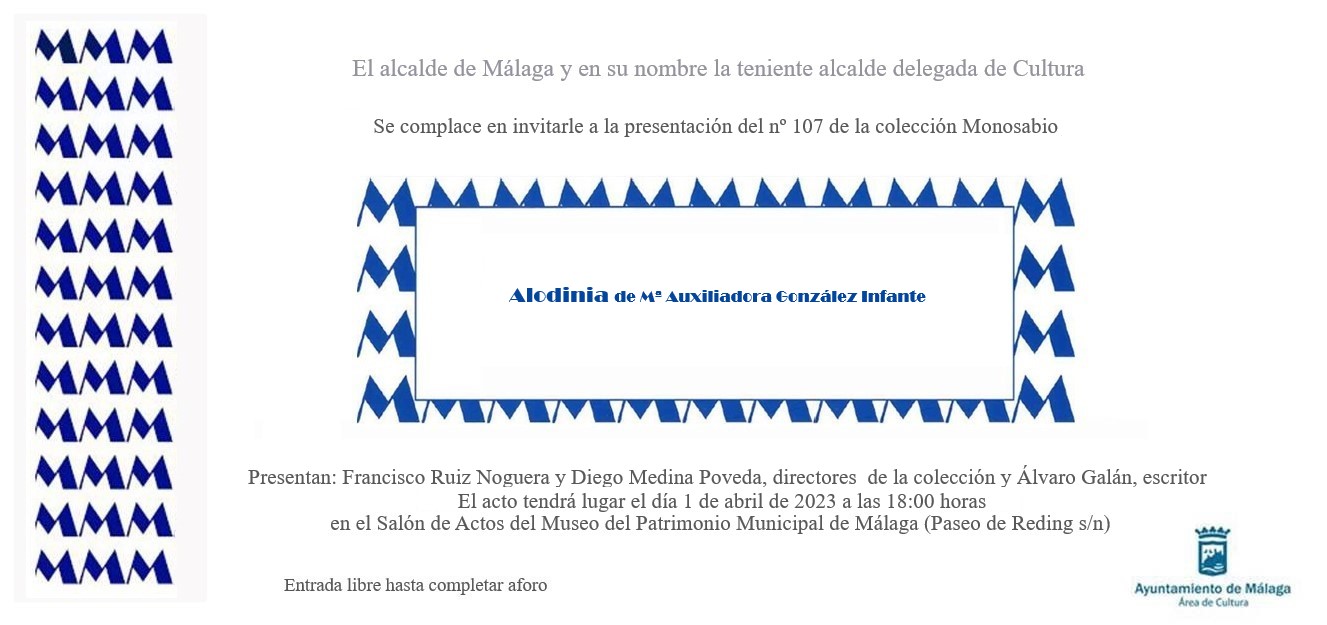LA COLECCIÓN MONOSABIO PRESENTA EL SÁBADO SU NÚMERO 107: ‘ALODINIA’ DE Mª AUXILIADORA GONZÁLEZ INFANTE