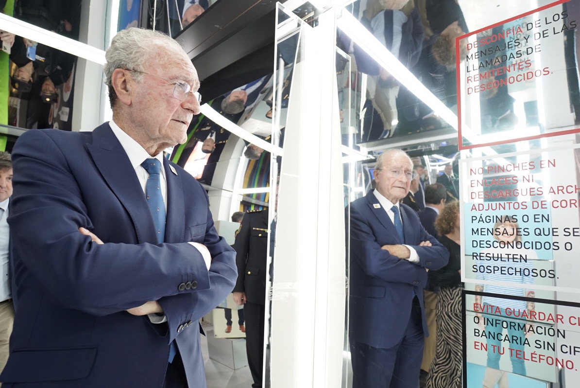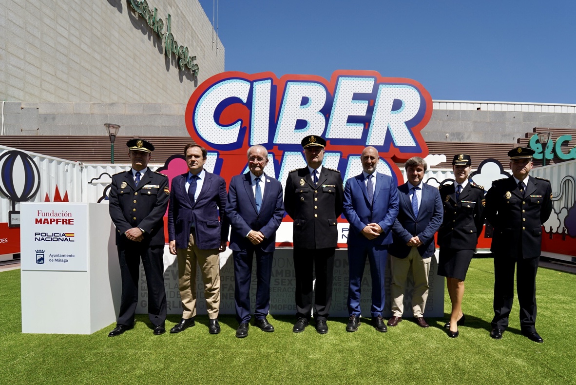 La Policía Nacional, el Ayuntamiento de Málaga y Fundación MAPFRE ponen en marcha Ciberland , una novedosa actividad para protegerse frente a los riesgos del mundo digital. La presentación de esta iniciativa se ha celebrado este mediodía con la asistencia del alcalde de Málaga, Francisco de la Torre Prados; el jefe de la Brigada Provincial de Policía Judicial, Fernando Sanchez Piedrafita, y el director de Promoción de la Salud de Fundación MAPFRE, Antonio Guzmán, así como del concejal de Seguridad del Ayuntamiento de Málaga, Avelino Barrionuevo. Una exposición itinerante que recala en Málaga instalada en la avenida de Andalucía (explanada de El Corte Inglés), en la que durante 20 minutos y, a través de un recorrido por distintos espacios, propone, entre otros objetivos, enseñar a diferenciar entre contenidos ilegales o ilícitos, a reconocer un discurso de odio y una noticia falsa, a evitar una suplantación de identidad ( phising ) o una situación de grooming . También profundizarán en el ocio que se desarrolla en línea y los riesgos que conlleva, entre ellos, los juegos y apuestas online, los videojuegos y los retos virales, así como las consecuencias que puede tener un uso abusivo y adictivo de las TIC.