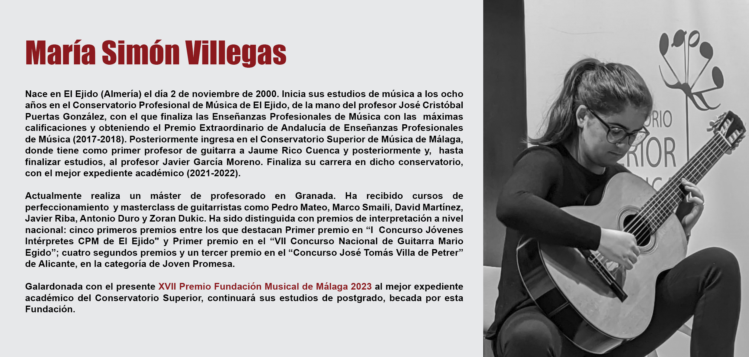 LA JOVEN GUITARRISTA MARÍA SIMÓN VILLEGAS GANADORA DEL XVII PREMIO FUNDACIÓN MUSICAL DE MÁLAGA 2023
