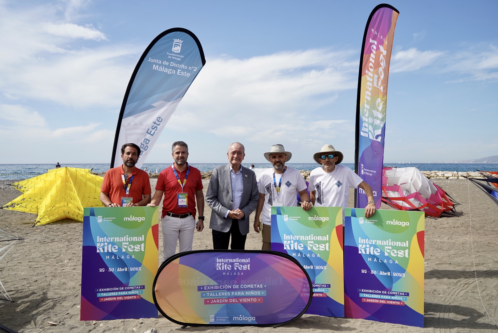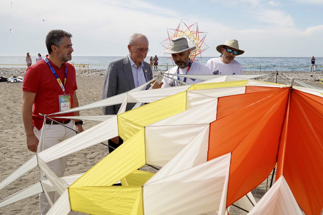 El alcalde de Málaga, Francisco de la Torre, acompañado por el concejal del Distrito Este, Carlos Conde, ha asistido esta mañana, en la playa de las Acacias, al inicio del ‘International Kite Fest’ Málaga 2023. Las playas de las Acacias y de la Misericordia acogen los días 29 y 30 de abril esta cita que contempla exhibiciones de vuelo de cometas llevadas a cabo por pilotos profesionales nacionales e internacionales. Además, el ‘International Kite Fest’ Málaga 2023, cuenta en su programación con actividades gratuitas para niños y niñas y familias, cuya inscripción se deberá llevar a cabo in situ en el momento de la puesta en marcha de las actividades.