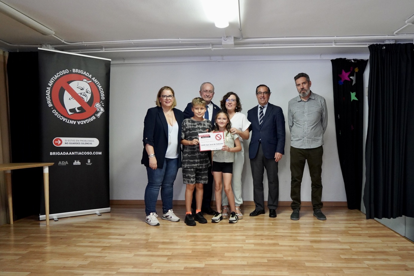 El alcalde de Málaga, Francisco de la Torre, junto a los concejales delegados de Derechos Sociales y Educación, Francisco Pomares y María Paz Flores, y al delegado de Desarrollo Educativo y de Formación Profesional de la Junta de Andalucía en Málaga, Miguel Briones, ha participado esta mañana en el colegio de educación primaria San José de Calasanz en la entrega de diplomas a los participantes del programa contra el acoso escolar que se ha desarrollado en Málaga durante el curso 2022-2023 y en el que han participado una treintena de colegios, coincidiendo con el Día Internacional contra el acoso escolar que se conmemoró ayer 2 de mayo. Este proyecto, que cuenta con la colaboración de las áreas de Derechos Sociales y Educación, ha sido llevado a cabo por la Brigada Antiacoso ( www.brigadaantiacoso.com [http://www.brigadaantiacoso.com] ) y está promovido por la asociación Infania, entidad dedicada a la protección de la infancia, y la asociación Ada Lovelace, entidad especializada en la formación en acoso.