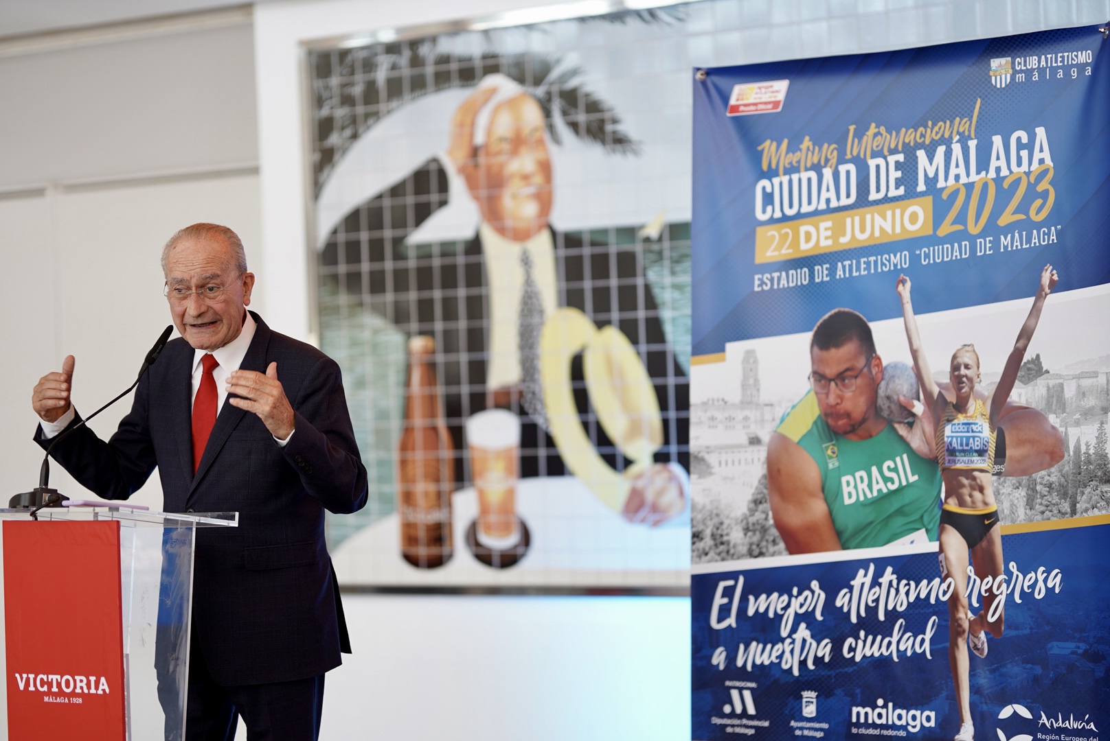 El alcalde de Málaga en funciones, Francisco de la Torre, ha asistido a la presentación del II Meeting Internacional de Atletismo ‘Ciudad de Málaga’ que se celebrará el próximo 22 de junio en el Estadio Ciudad de Málaga con entrada gratuita hasta completar aforo. El acto de presentación ha tenido lugar en la Fábrica de Cervezas Victoria.