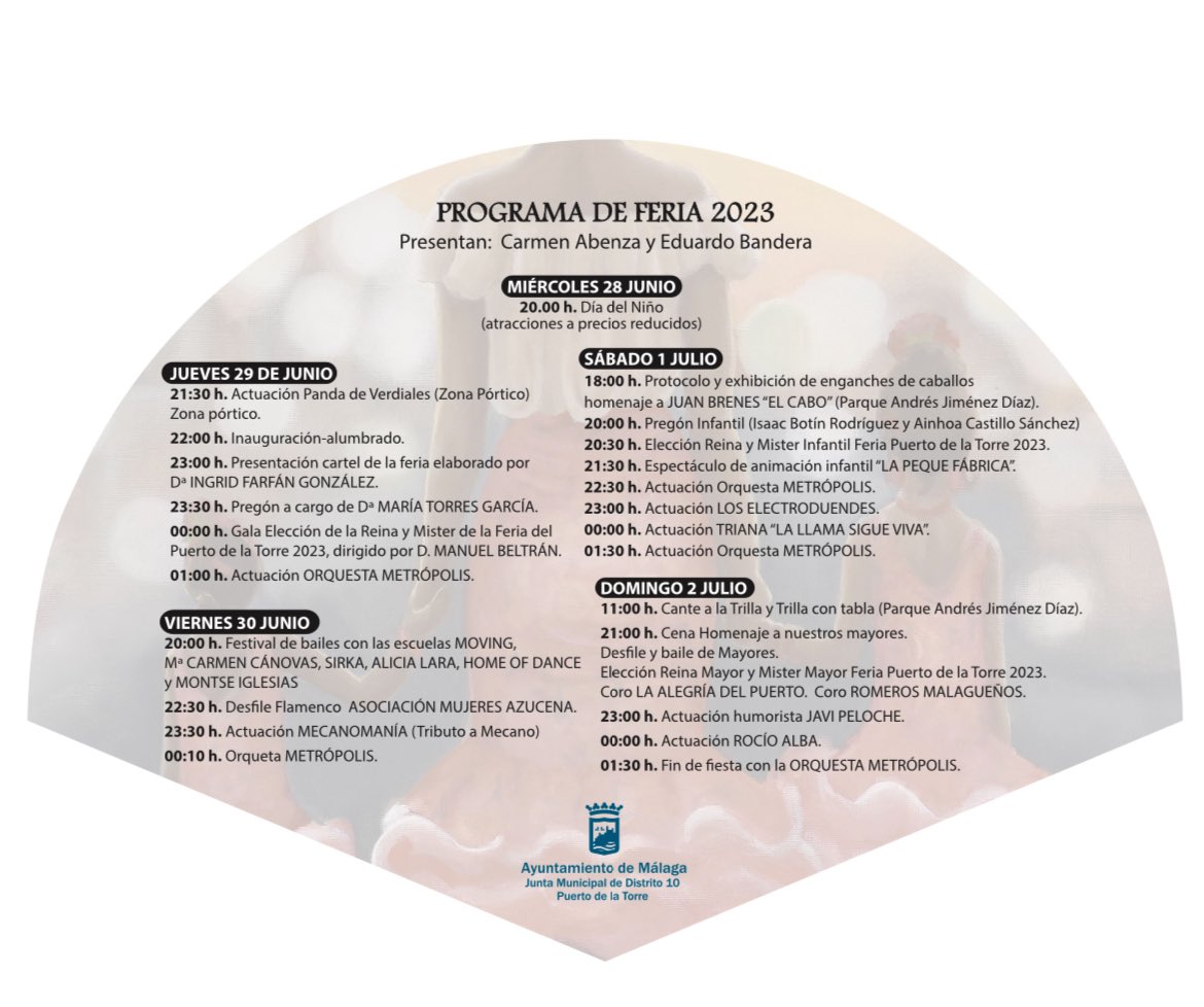 LA FERIA DEL PUERTO DE LA TORRE SE CELEBRARÁ DESDE EL 28 DE JUNIO AL 2 DE JULIO 26/6/2023 Imagen Contará con diferentes espectáculos y actividades para todos los públicos El sábado se celebrará la XXVI exhibición de enganches de caballos y el domingo el certamen de cante a la trilla Documentos NOTA INFORMATIVA.pdf 264,93 KB kb Galería de imágenes