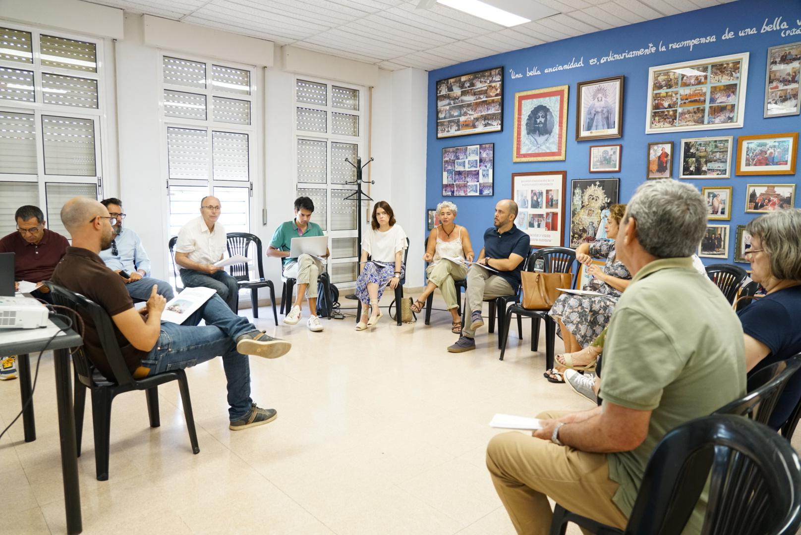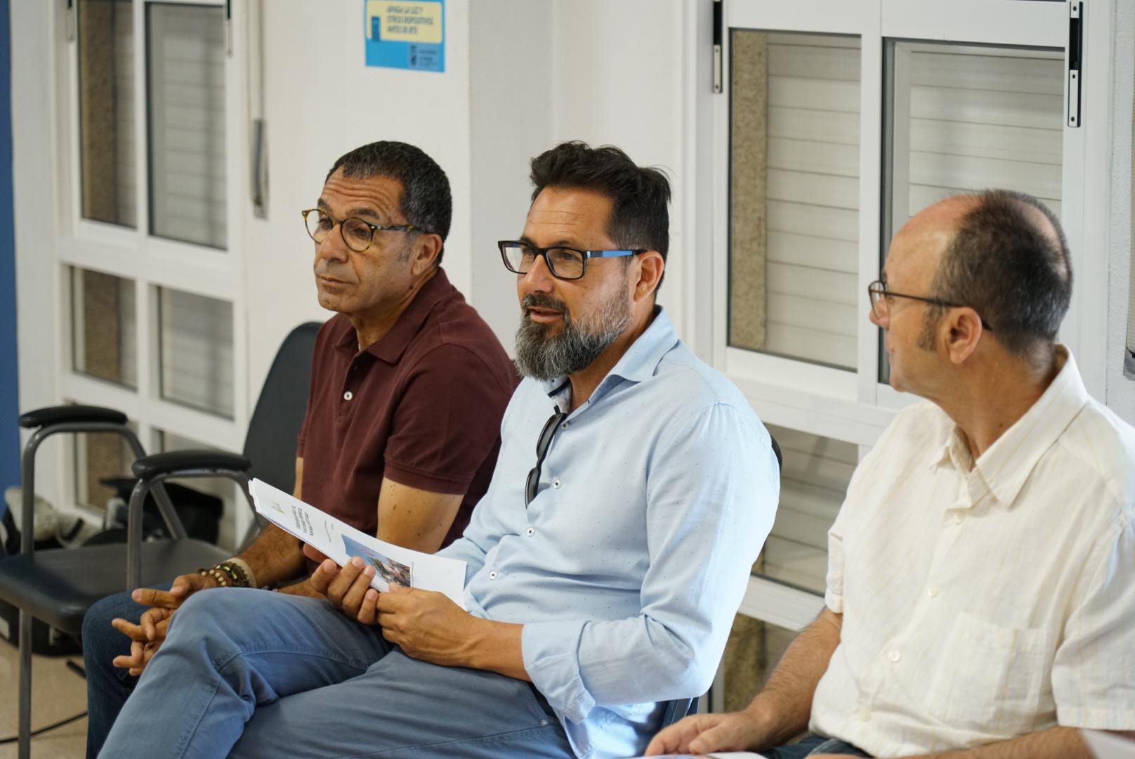 El concejal del distrito de Palma Palmilla, Francisco Pomares, junto a la presidenta de la Asociación de la Prensa de Málaga, Elena Blanco, y el coordinador de dinamización del Plan Comunitario Proyecto Hogar, Carlos Torres, ha asistido en el Centro Ciudadano Valle Inclán a la sesión de trabajo entre los medios de comunicación de la ciudad y el vecindario de Palma Palmilla, promovida por el Plan Comunitario Proyecto Hogar del distrito, para la confección de una guía de recomendaciones sobre la cobertura informativa en Palma Palmilla.