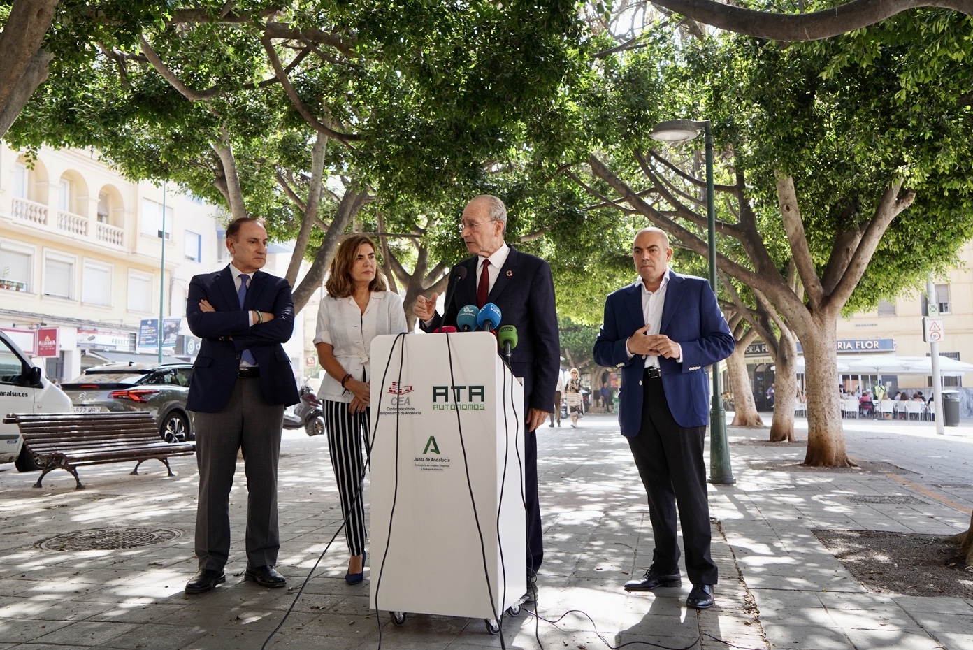 El alcalde de Málaga, Francisco de la Torre, y las ediles de Comercio, Gestión de la Vía Pública, Fomento de la Actividad Empresarial y Educación y Fomento del Empleo, Elisa Pérez de Siles y Maria Paz Flores, respectivamente, junto a la consejera de Empleo, Empresa y Trabajo Autónomo, Rocío Blanco; el presidente de la Confederación de Empresarios de Andalucía (CEA) y la de Málaga (CEM), Javier González de Lara; el presidente de ATA, Lorenzo Amor; han asistido a la clausura del Autobús del Emprendedor de la Asociación de Trabajadores Autónomos (ATA), que hoy ha finalizado su recorrido tras cinco semanas durante las que ha visitado un total de 23 localidades de las distintas provincias andaluzas. Esta acción se enmarca dentro del proyecto ‘Más Emprendimiento, Más Andalucía”, que desarrollan ATA y CEA, a través de un convenio con la Junta de Andalucía.