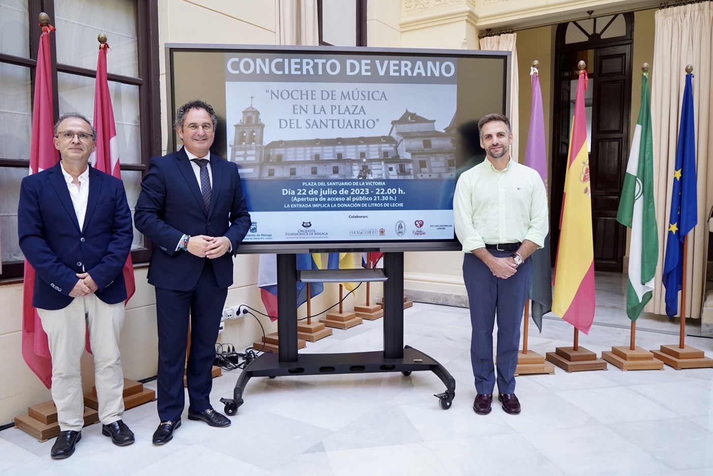 LA ORQUESTA FILARMÓNICA DE MÁLAGA OFRECE UN CONCIERTO SOLIDARIO EN LA PLAZA DEL SANTUARIO DE LA VICTORIA 14/7/2023 Imagen El concierto se celebrará la noche del 22 de julio con un programa de bandas sonoras de cine Las entradas se podrán adquirir a cambio de un litro de leche que se destinará a las entidades solidarias del distrito Documentos NOTA INFORMATIVA.pdf 340,09 KB kb Galería de imágenes