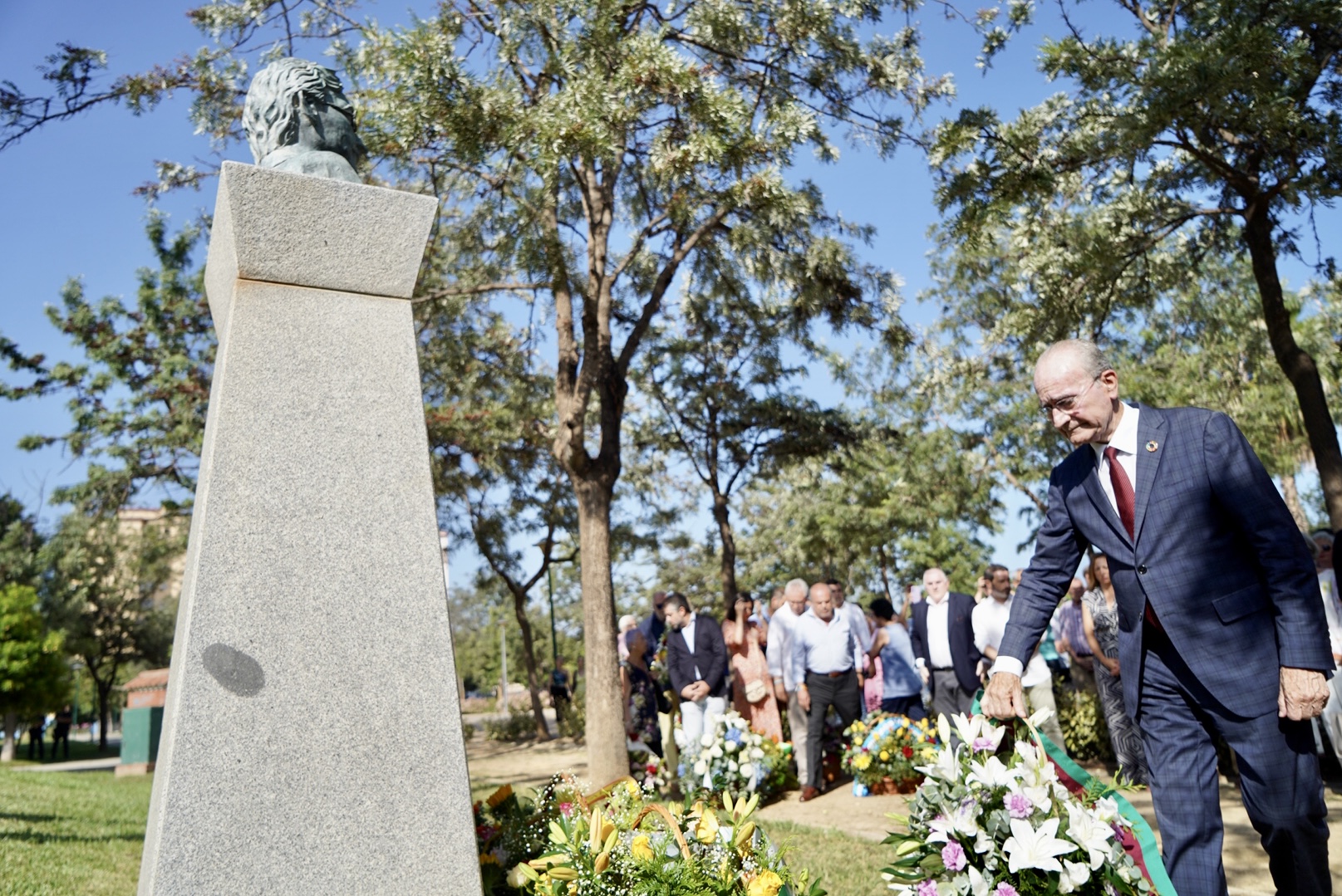 El acto ha tenido lugar en el busto en su memoria ubicado en el Parque Huelin