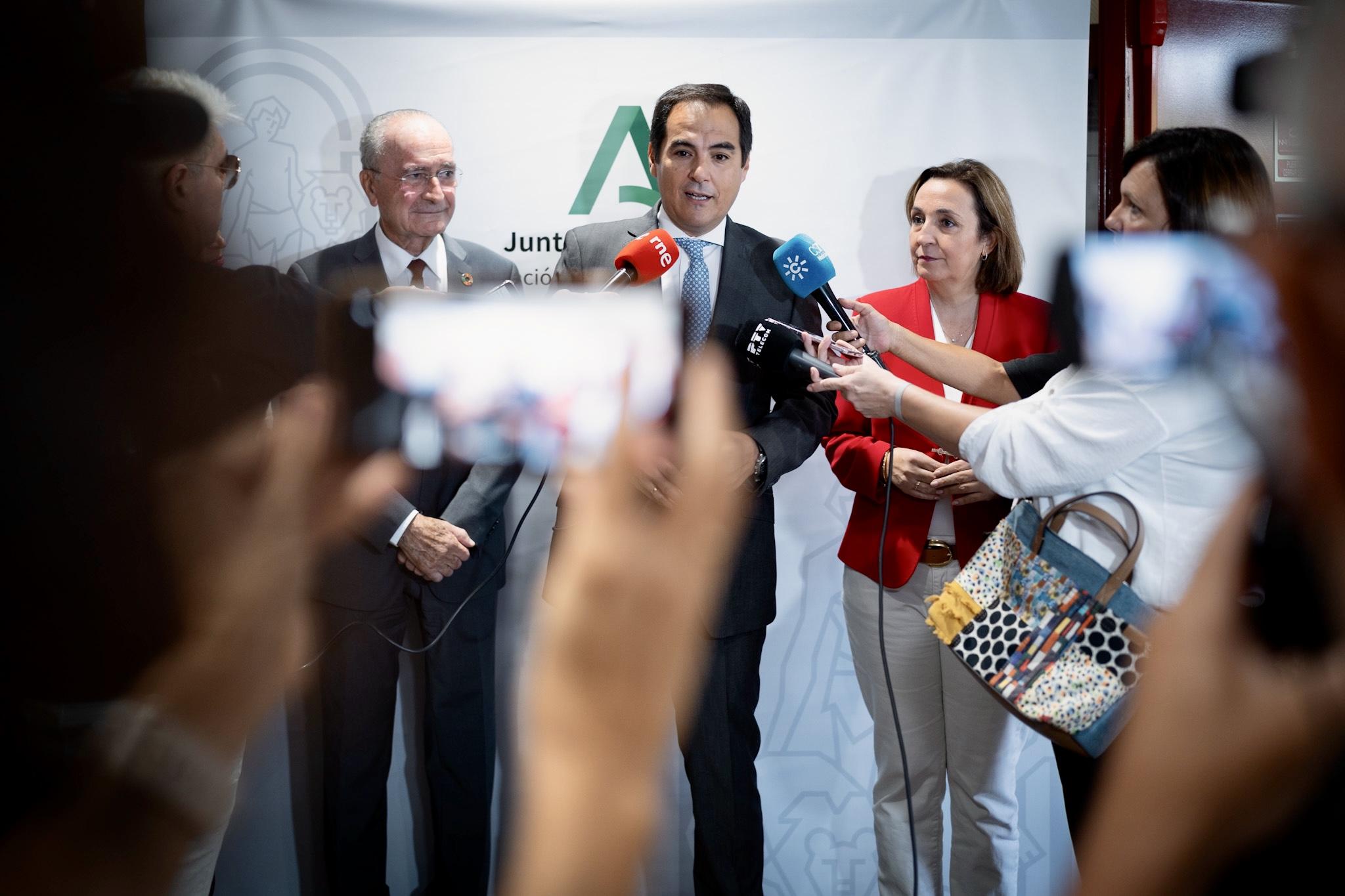 El alcalde de Málaga, Francisco de la Torre, junto al consejero de Justicia, Administración Local y Función Pública, José Antonio Nieto, ha participado esta mañana a la presentación de la sexta edición de la ‘Guía para concejales de la comunidad autónoma de Andalucía’, en el Edificio Administrativo de Servicios Múltiples de la Junta de Andalucía.