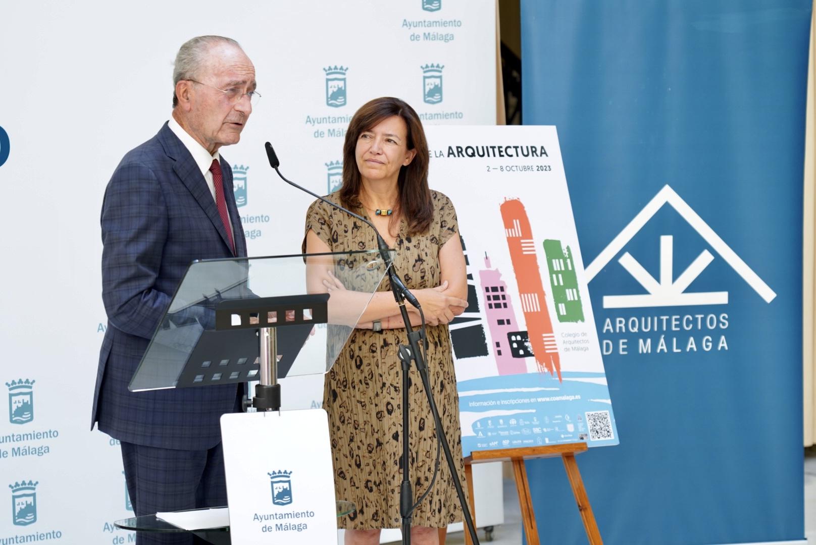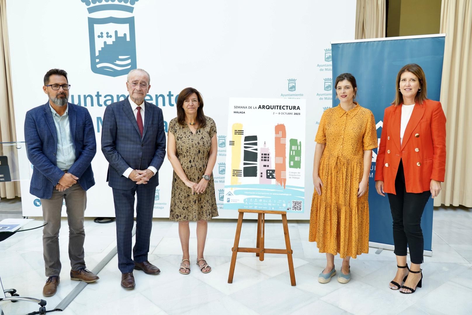 El alcalde de Málaga, Francisco de la Torre, junto a los concejales delegados de Urbanismo y Vivienda, Carmen Casero y Francisco Pomares, respectivamente, y la decana del Colegio de Arquitectos de Málaga, Susana Gómez De Lara, ha presentado esta mañana una nueva edición de la Semana de la Arquitectura que se celebra del 2 al 8 de octubre.