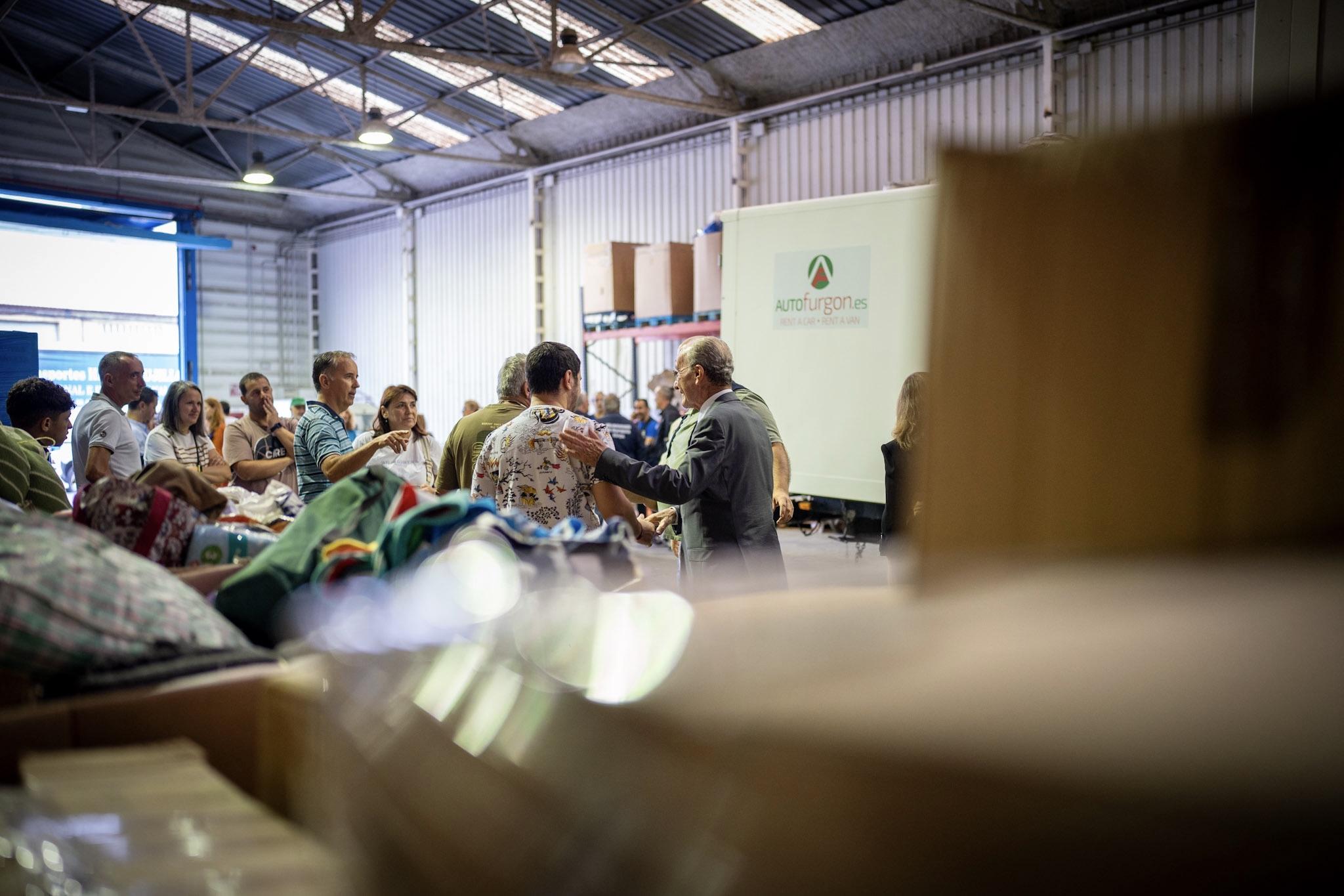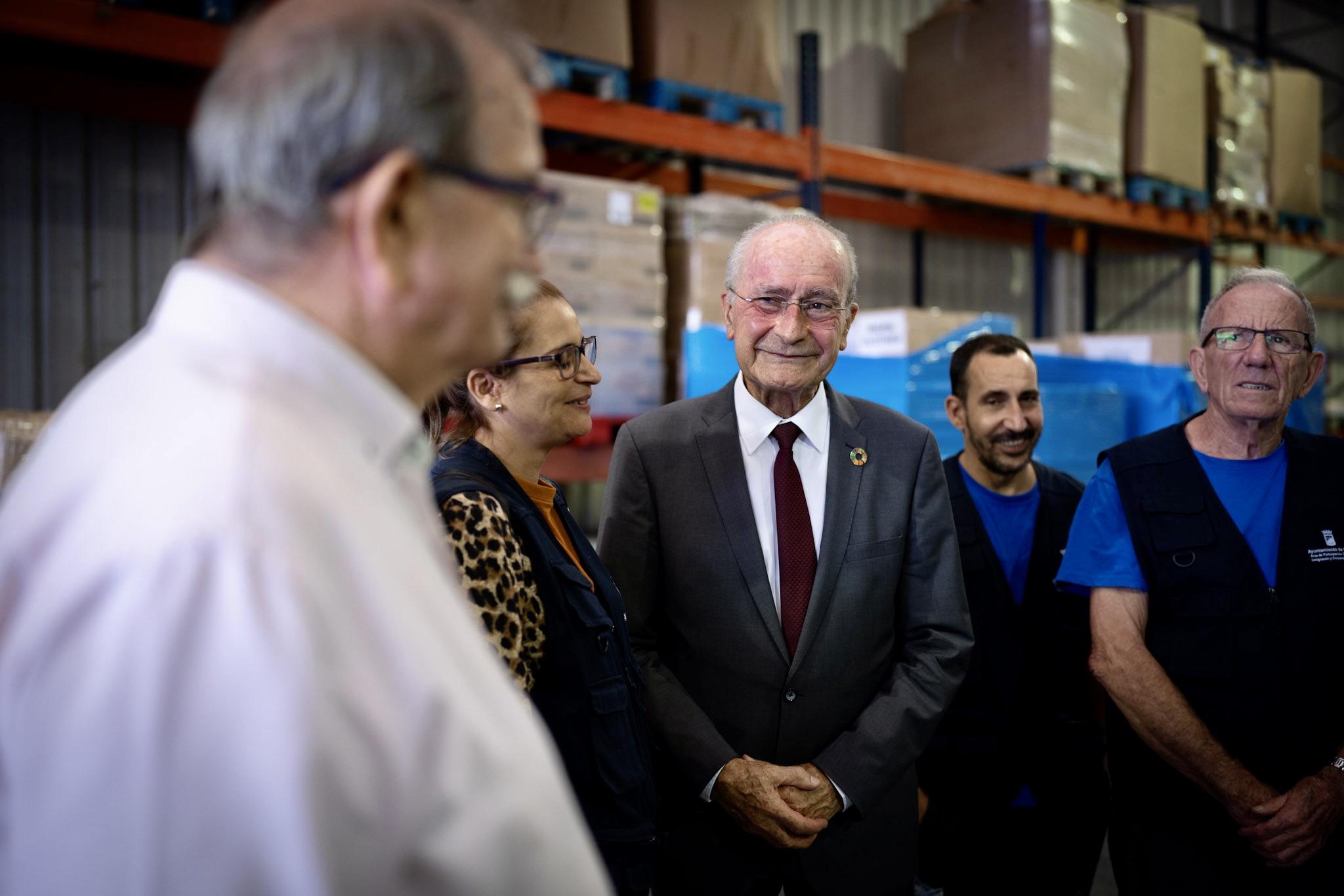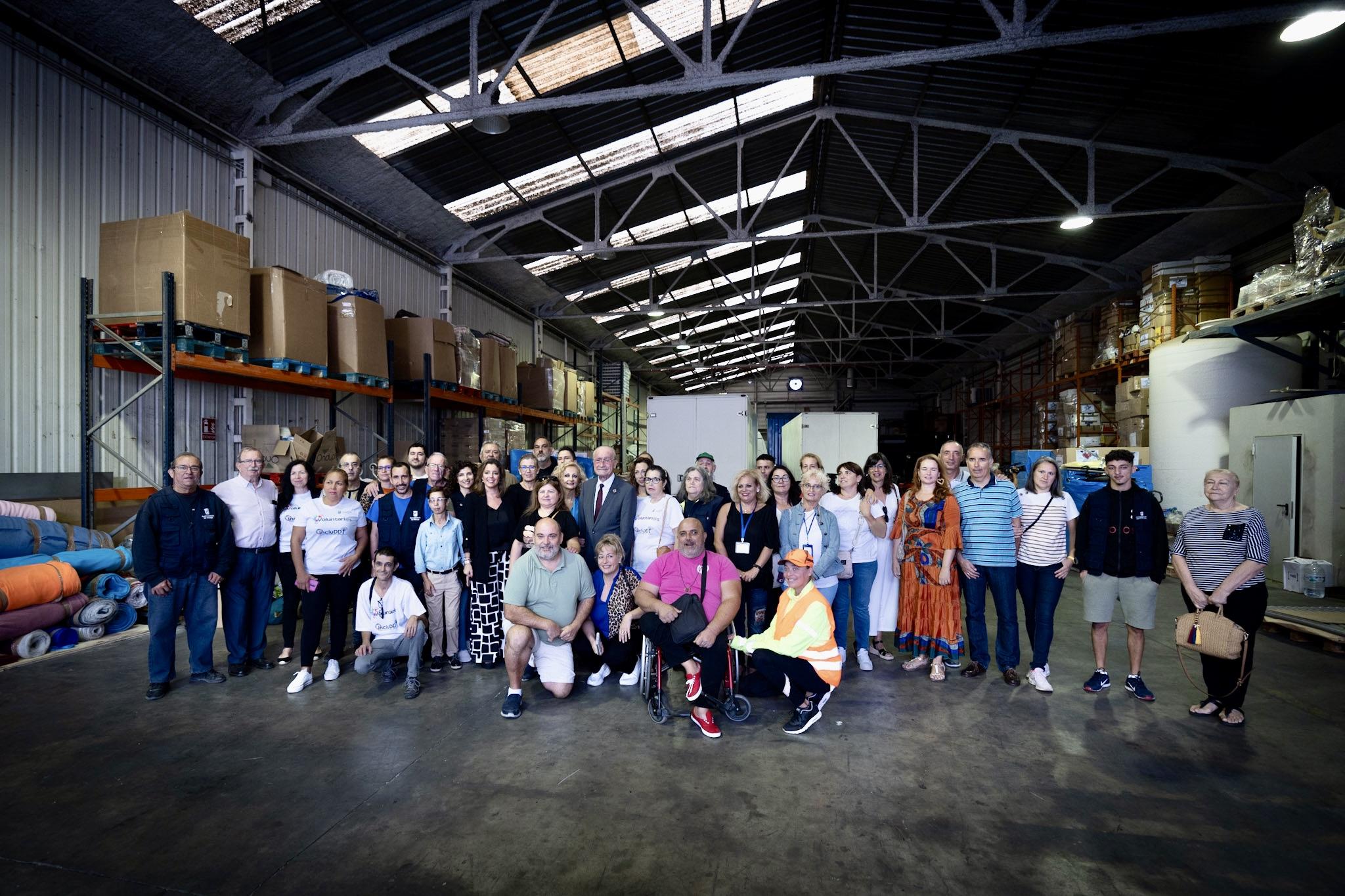 El alcalde de Málaga, Francisco de la Torre, junto a la concejala delegada de Participación y Cooperación al Desarrollo, Mar Torres, ha visitado esta mañana el almacén donde se recopila y clasifica el material donado para el segundo convoy de ayuda humanitaria que se destina a los damnificados por el terremoto de Marruecos