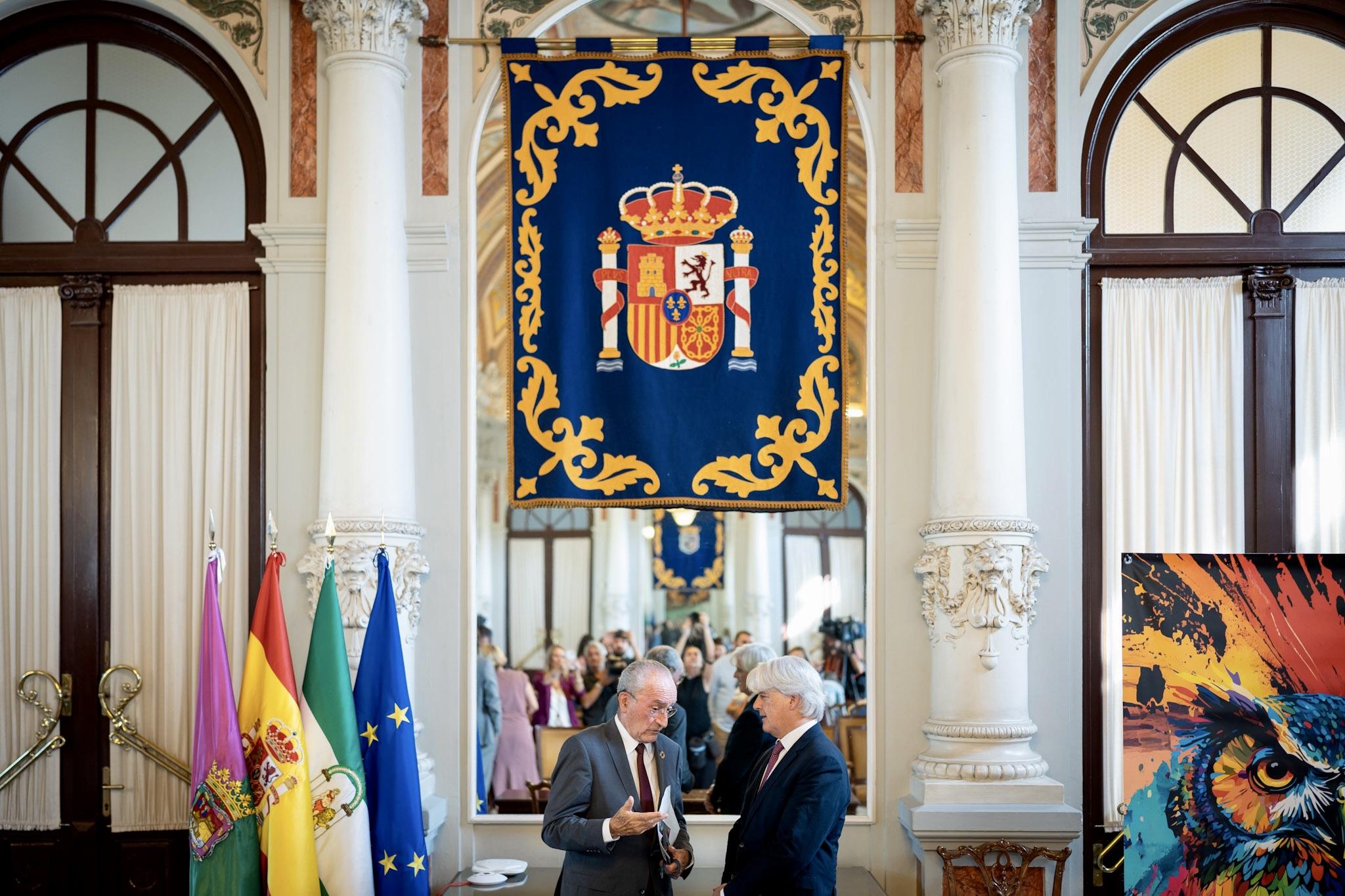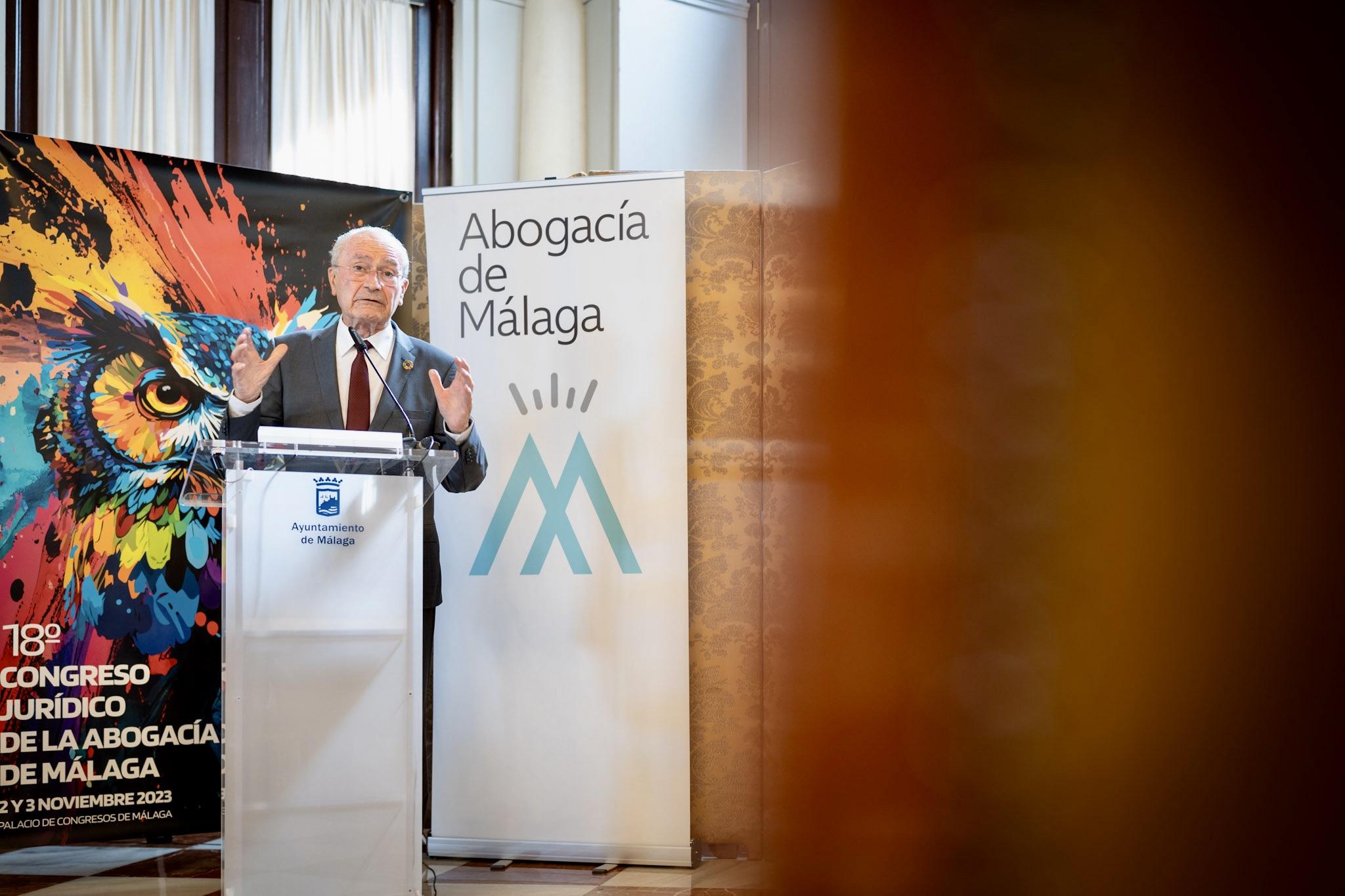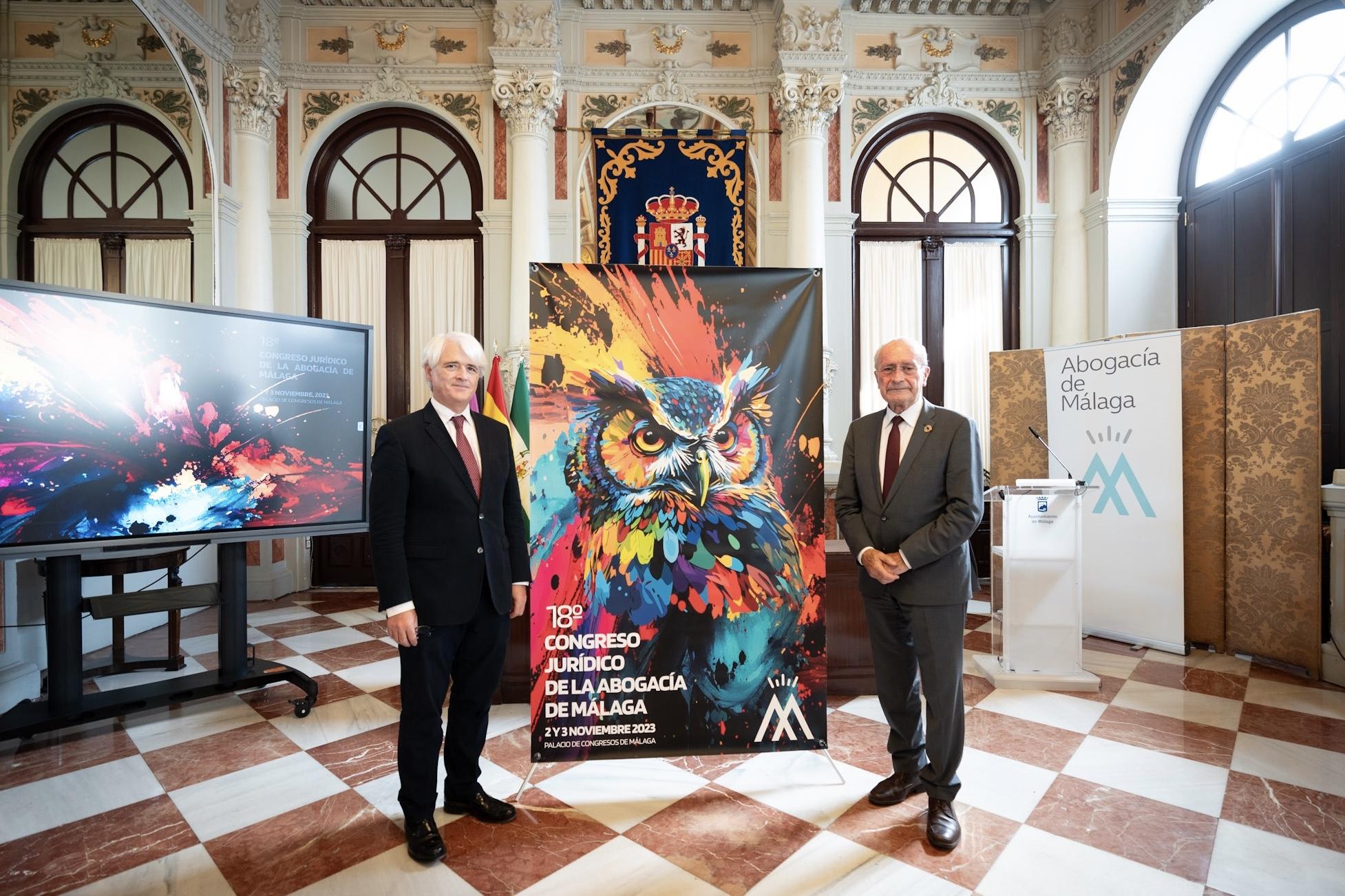 El alcalde de Málaga, Francisco de la Torre, junto al decano del Colegio de Abogados de Málaga, Salvador González, ha presentado el 18º Congreso Jurídico de la Abogacía de Málaga en el Salón de los Espejos del Ayuntamiento. Este congreso se celebrará en el Palacio de Ferias y Congresos de la ciudad los días 2 y 3 de noviembre.