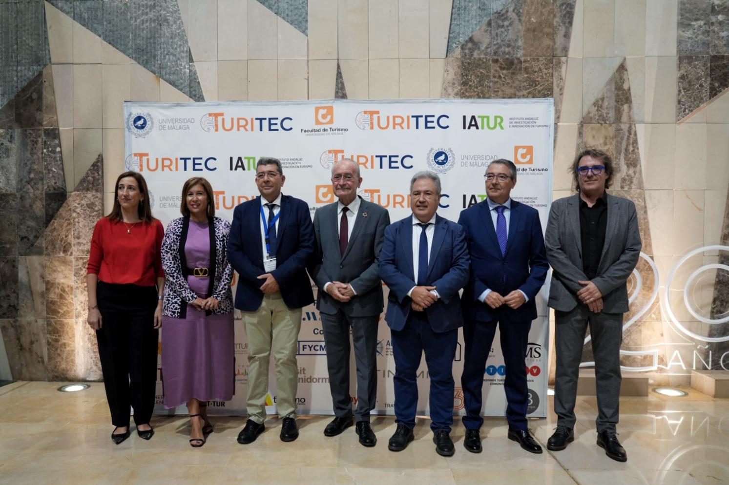 El alcalde de Málaga, Francisco de la Torre, junto al presidente de la Diputación de Málaga, Francisco Salado; el vicerrector de Proyección Social y Comunicación de la Universidad de Málaga, Juan Antonio García Galindo; la delegada de Turismo de la Junta de Andalucía, Gemma del Corral; el decano Facultad de Turismo de la UMA, Antonio Guevara Plaza; y el Director del Instituto Andaluz de Investigación e Innovación en Turismo (IATUR), Enrique Navarro, ha asistido al acto de inauguración del XIV Congreso Internacional de Turismo y Tecnologías TIC (TURITEC), el mayor foro en España sobre las TIC aplicadas a la Industria Turística, que se celebra el 19 y el 20 de octubre de 2023 en el Palacio de Ferias y Congresos de Málaga (FYCMA).