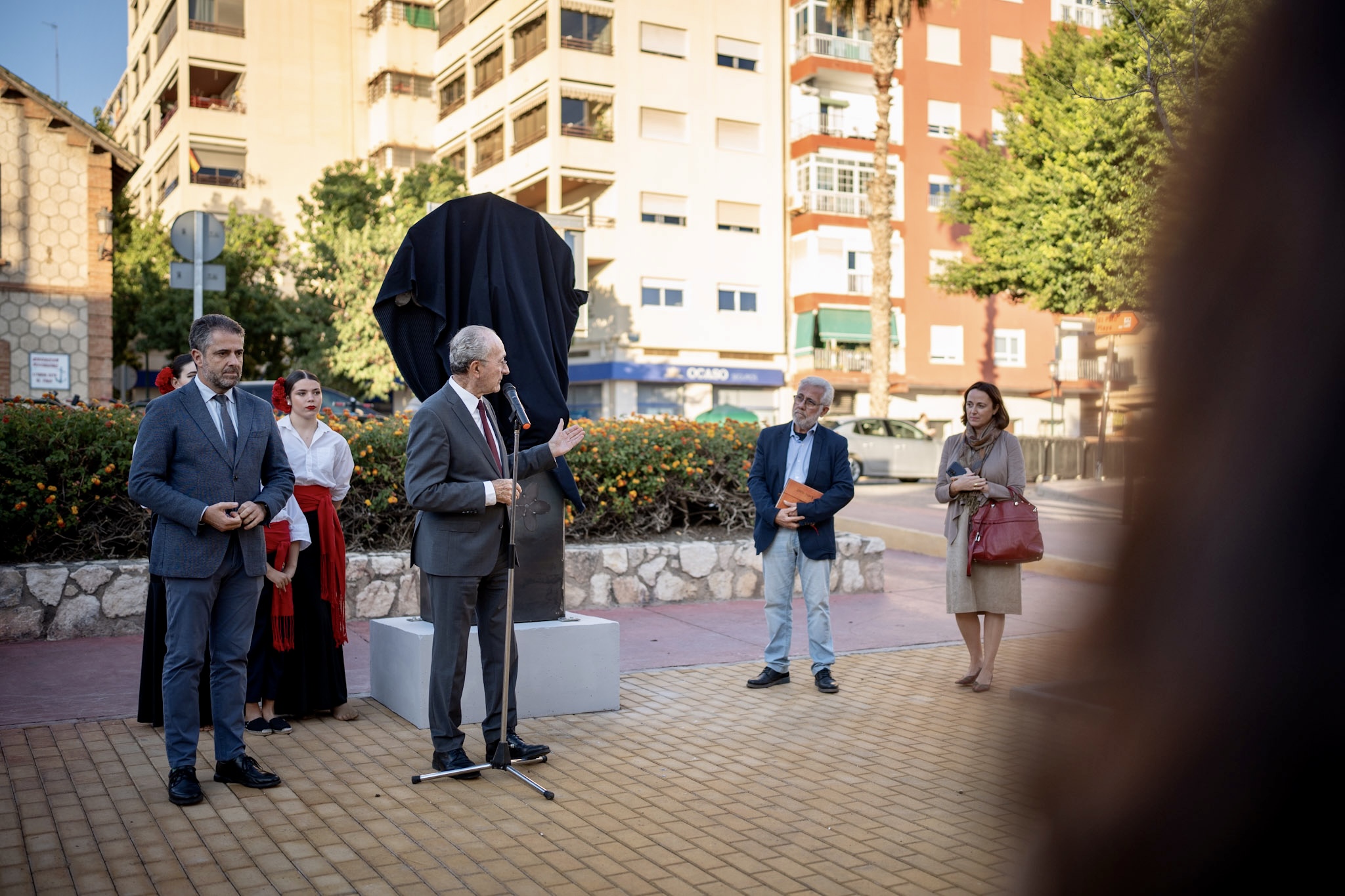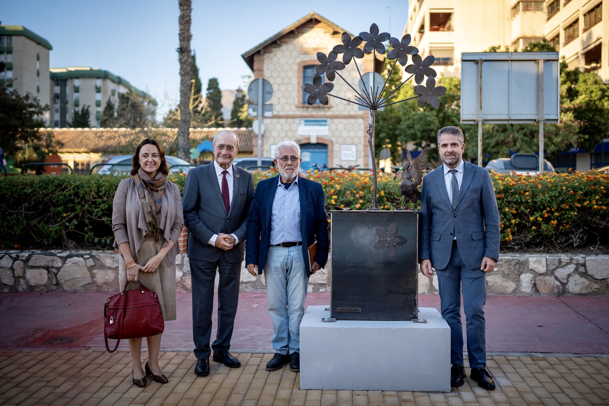 El alcalde de Málaga, Francisco de la Torre, junto al concejal delegado del distrito Este, Carlos Conde, y a la concejala delegada de Cultura y Patrimonio Histórico, Mariana Pineda, ha inaugurado esta tarde la estatua alegórica de la ‘Flor de Málaga, la Biznaga’, obra del escultor malagueño Aurelio Robles, situada en la calle Biznaga en El Palo.