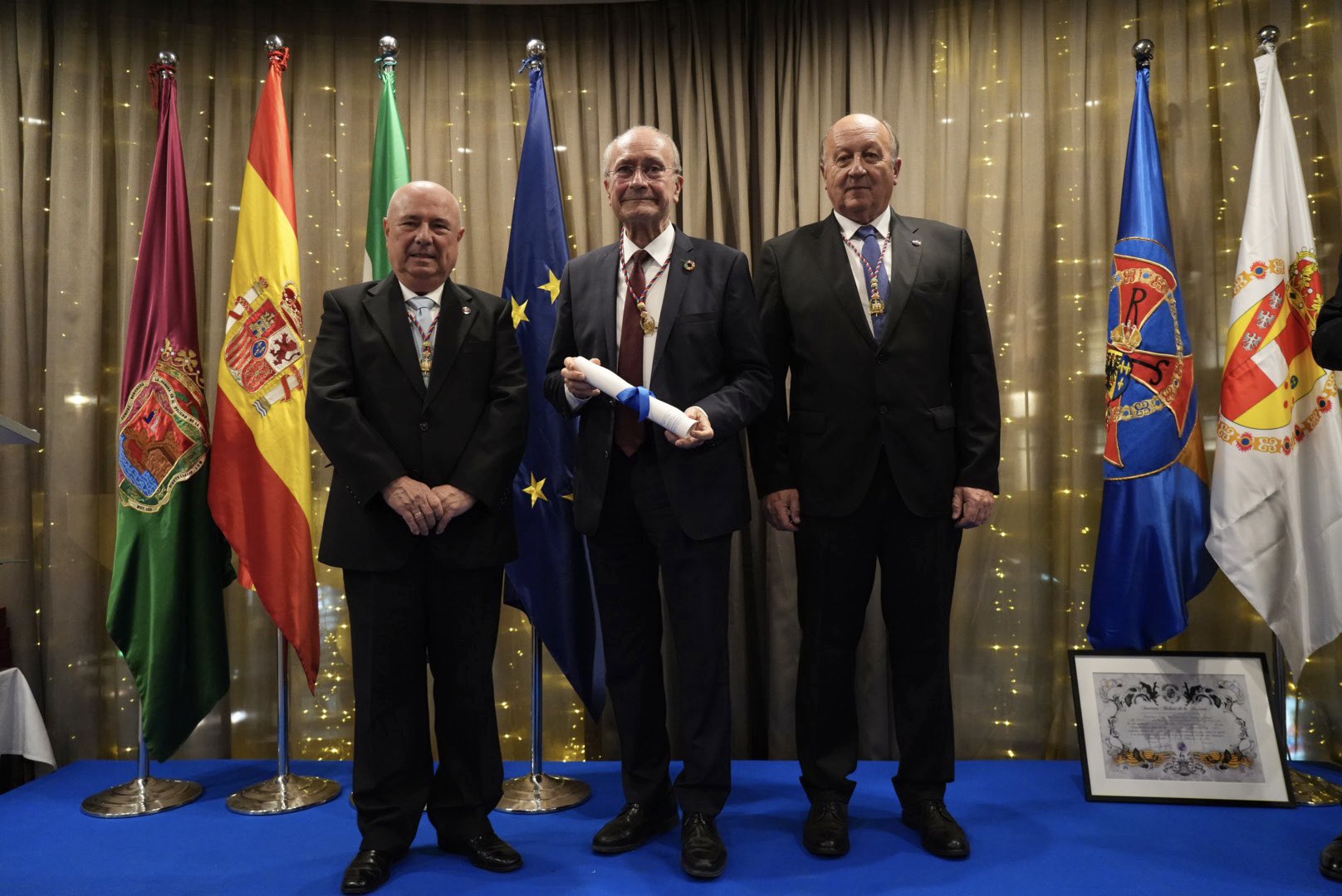 El alcalde de Málaga, Francisco de la Torre, ha recibido la distinción como académico de honor de la Institución Científica Carlomagno en un acto celebrado en el hotel AC Málaga Palacio. La entrega coincide con la celebración del acto de entrega del Premio de Investigación de esta institución y la UMA a Gloria Corpas Pastor. Recibe la distinción por su visión de futuro, la apuesta por las nuevas tecnologías en sucesivos mandatos e ideas como el Málaga Valley; propuestas que han cambiado la ciudad y a la ciudadanía convirtiéndola en una ciudad elogiada y envidiada por todos.