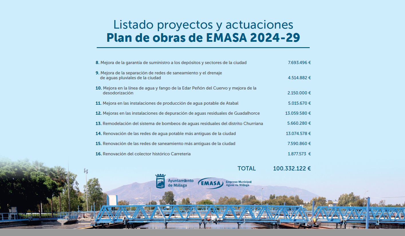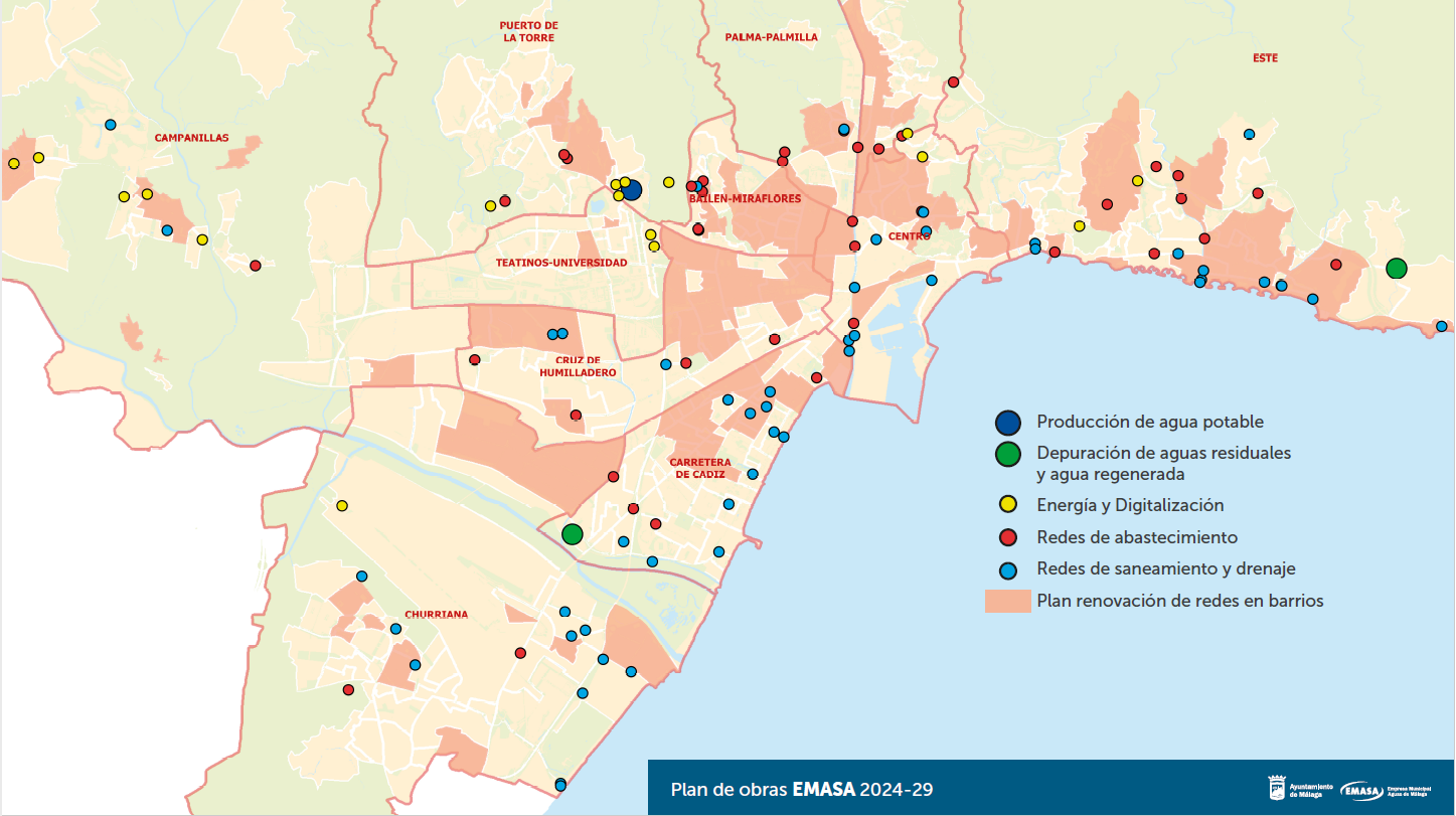 EMASA IMPULSA UN PLAN DE 100 MILLONES DE EUROS CON MÁS DE 130 ACTUACIONES EN LOS 11 LOS DISTRITOS DE LA CIUDAD