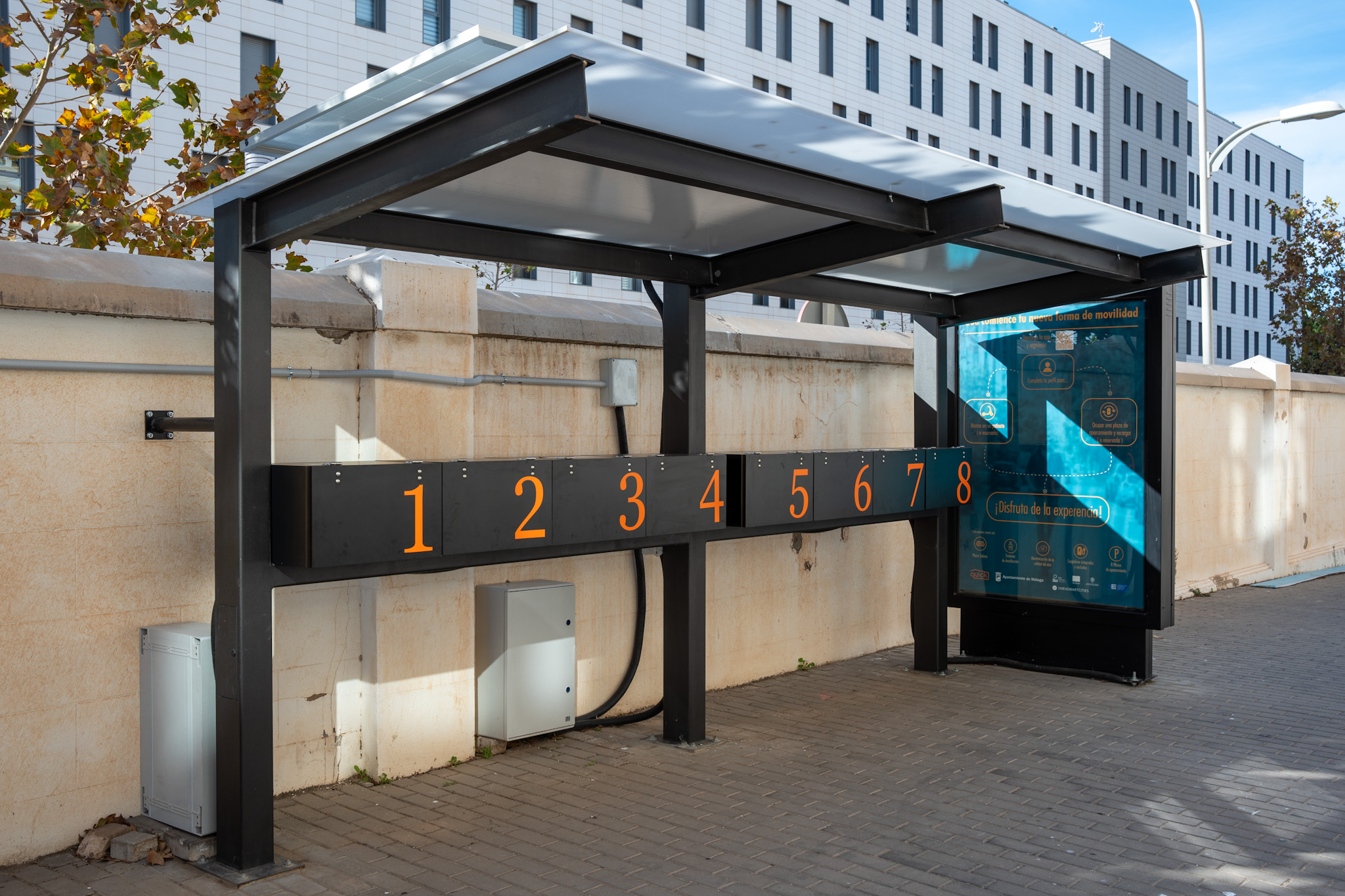 BIC Euronova, en colaboración con el Ayuntamiento de Málaga y en el marco del proyecto europeo de ciudades inteligentes SME4SMARTCITIES, implementa QUICK, un piloto vinculado a la movilidad sostenible consistente en una pérgola fotovoltaica para carga, desinfección y aparcamiento de patinetes eléctricos