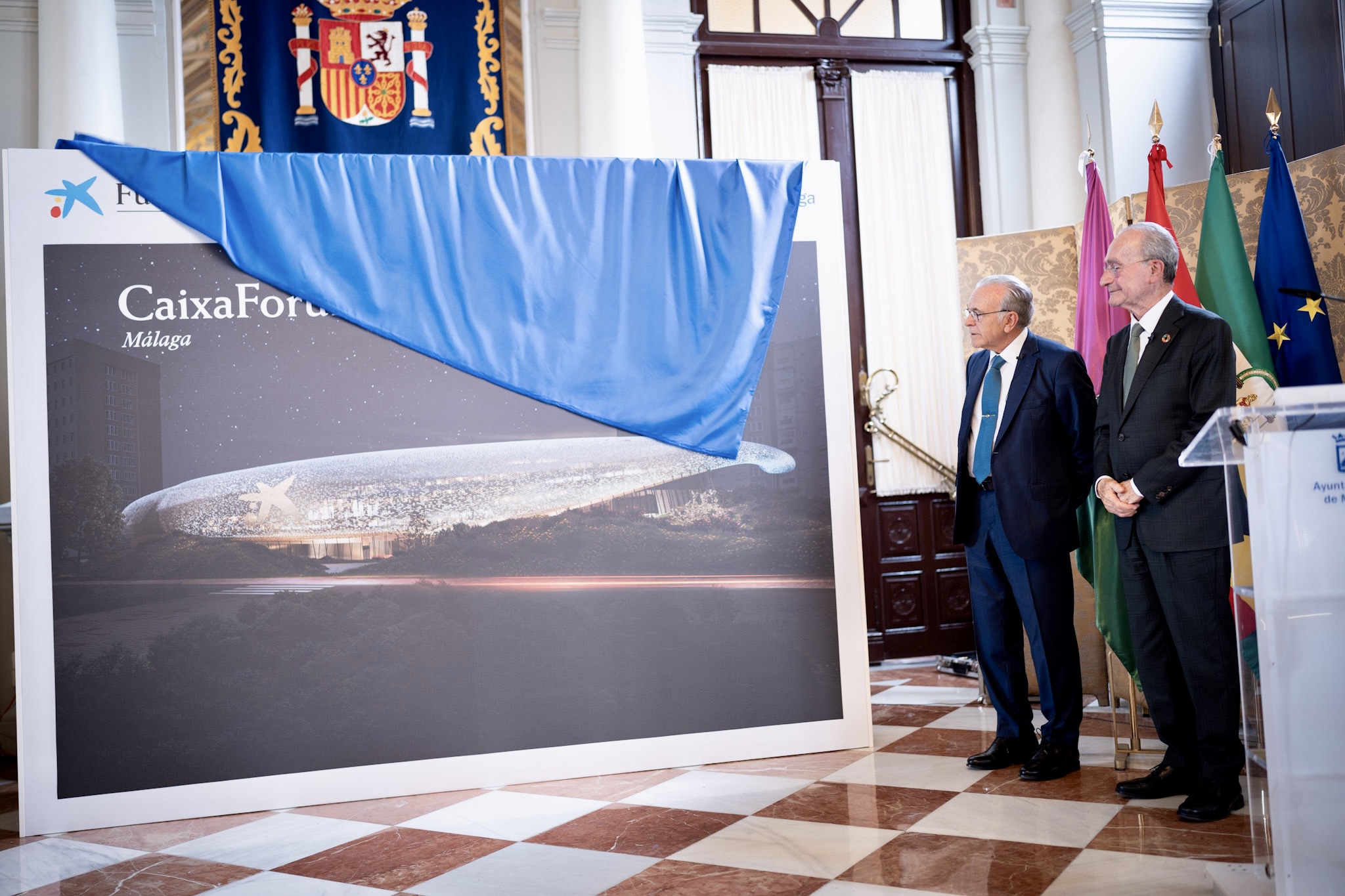 La Fundación ”la Caixa” ha presentado hoy el proyecto para dotar a Málaga de un centro cultural CaixaForum, que estará situado en la plaza Manuel Azaña. Con este espacio se busca complementar la oferta de la ciudad, crear áreas verdes en el entorno y convertir la zona en un nuevo polo revitalizador, tanto físico como social