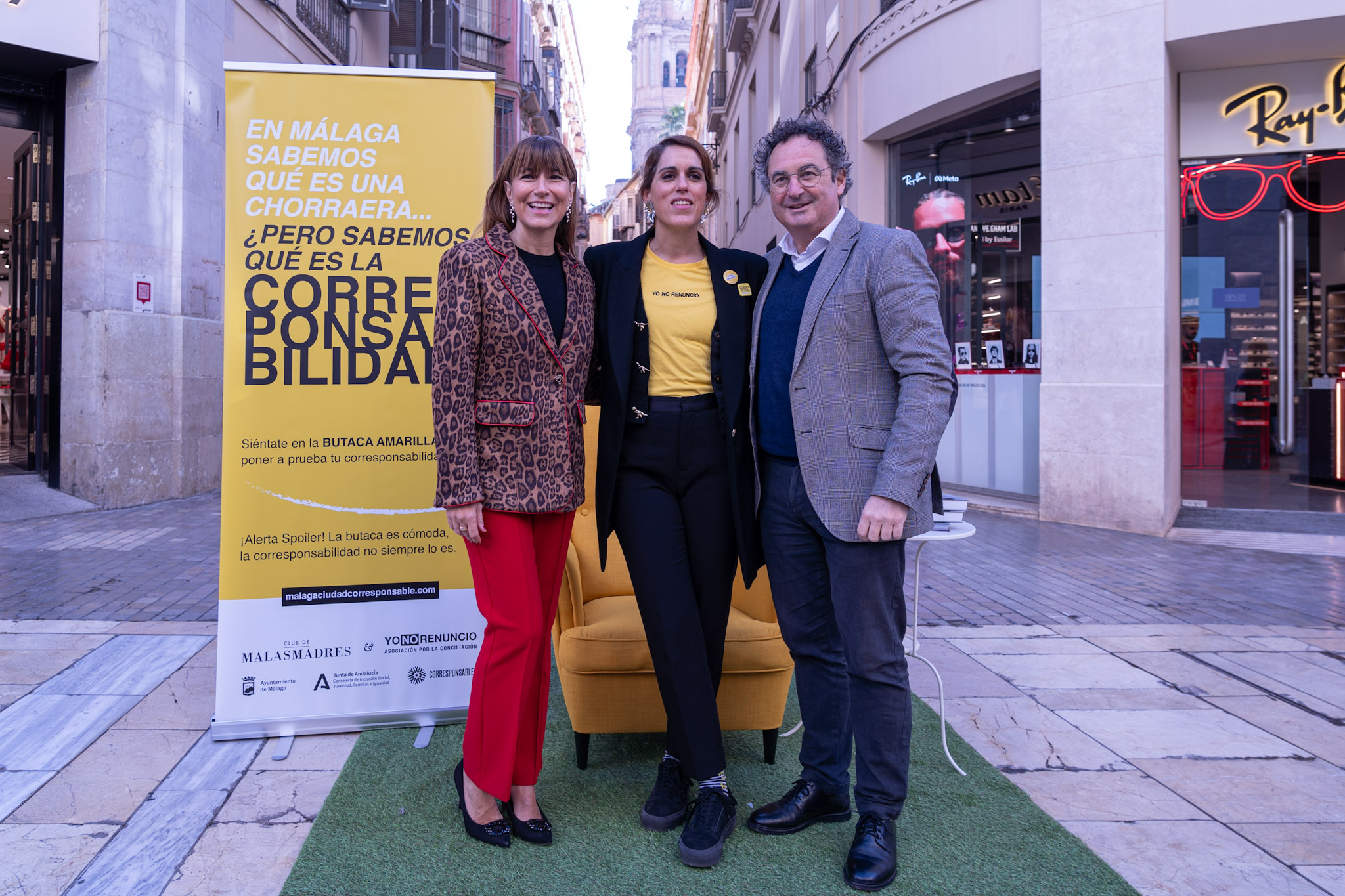 El concejal delegado de Derechos Sociales, Francisco Cantos, ha participado esta mañana en la iniciativa ‘La Butaca Amarilla’, impulsada por el Ayuntamiento de Málaga y la Asociación Yo No Renuncio para medir el grado de corresponsabilidad de la ciudadanía en las tareas doméstico-familiares. Se trata de la primera acción de este año de la campaña ‘Málaga Ciudad Corresponsable’, y consiste sentar a los malagueños en una butaca amarilla instalada en la calle Larios y por la tarde en Molina Lario para poner a prueba su nivel de corresponsabilidad. Málaga fue reconocida en 2023 como primera ciudad corresponsable ‘Yo No Renuncio’ .