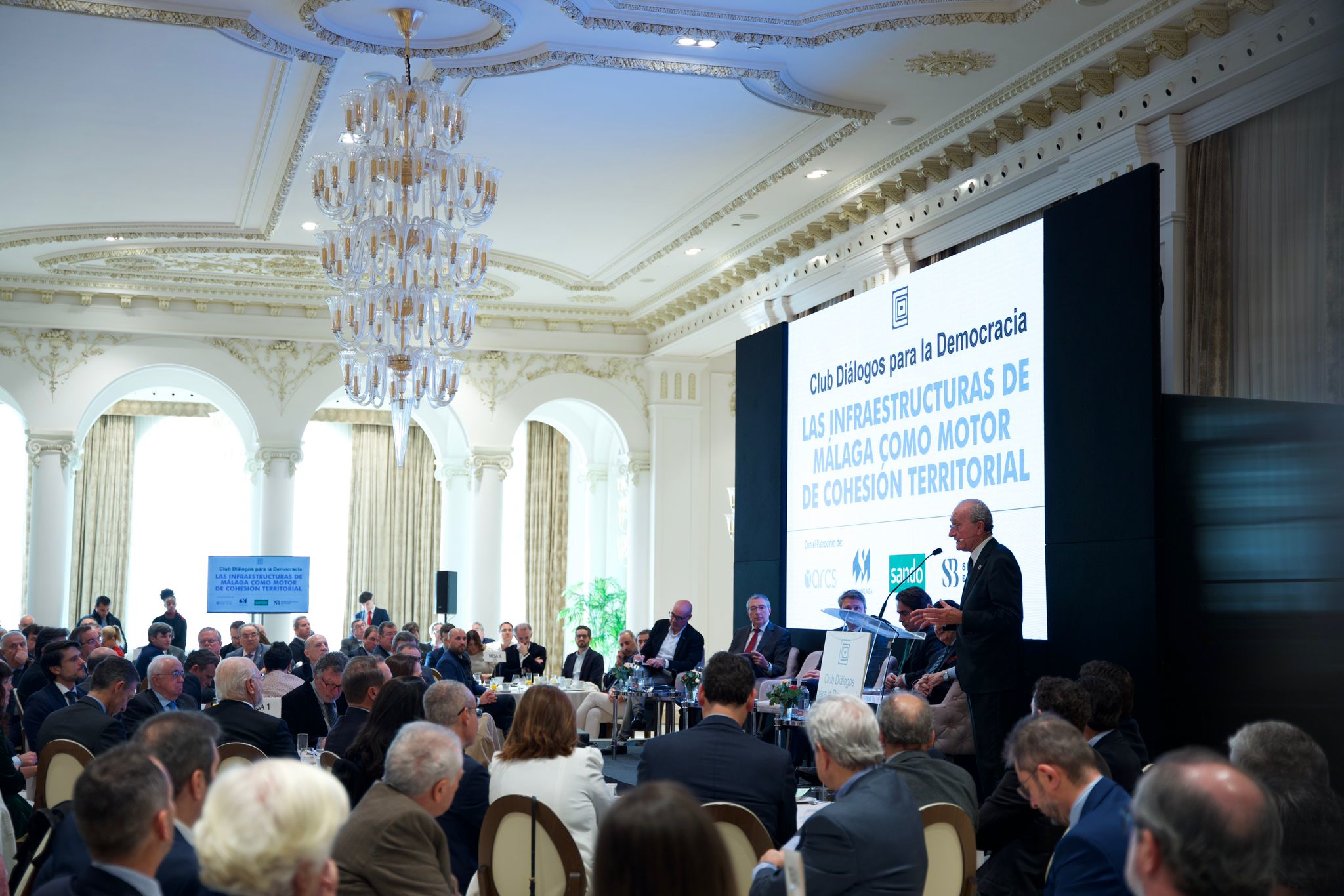 E l alcalde de Málaga, Francisco de la Torre, ha participado esta mañana en el Gran Hotel Miramar en la jornada ‘Las infraestructuras de Málaga como motor de cohesión territorial’, organizada por el Club Diálogos para la Democracia. Junto al alcalde han participado el presidente del club, Antonio Gavilanes; el viceconsejero de Fomento, Mario Muñoz-Atanet; el presidente de la Diputación, Francisco Salado; y el secretario de Estado de Transportes y Movilidad Sostenible, José Antonio Santano.