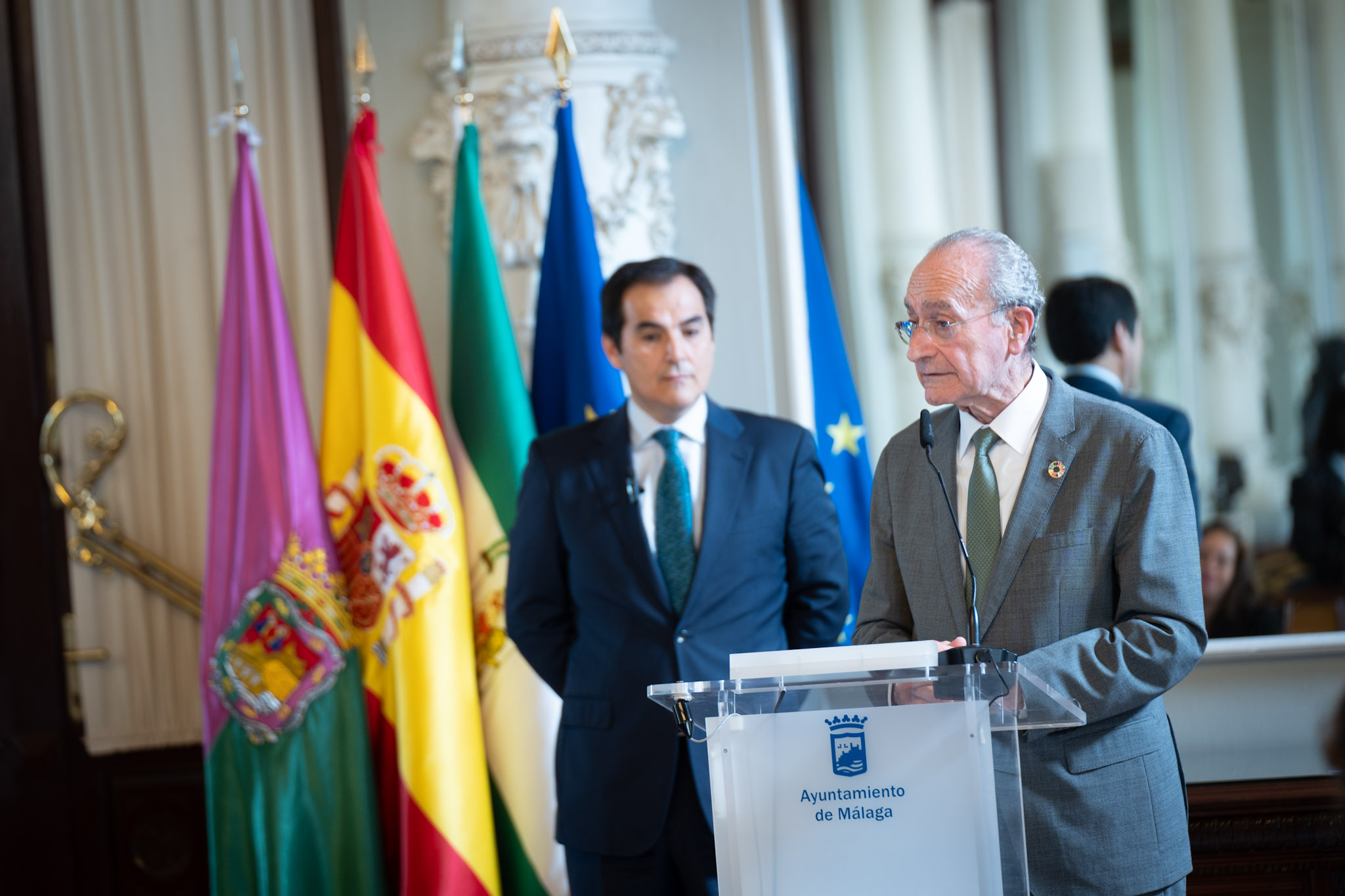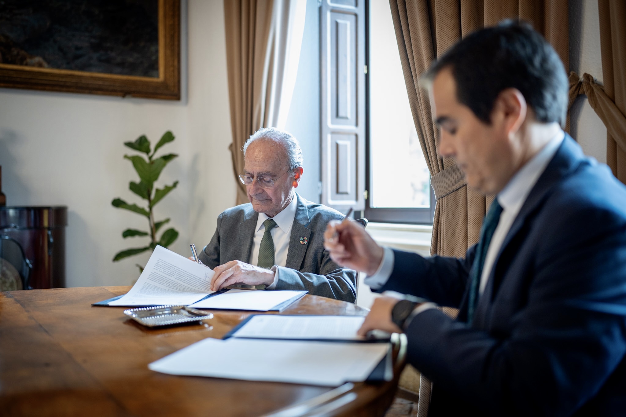 El alcalde de Málaga, Francisco de la Torre, y el consejero de Justicia, Administración Local y Función Pública de la Junta de Andalucía, José Antonio Nieto, han firmado esta mañana la adhesión del Ayuntamiento de Málaga al Catálogo electrónico de procedimientos de la Administración Local, Cep@l, que se va a implantar en el Consistorio. La firma de este convenio, que tiene cuatro años de vigencia, se enmarca en el despliegue de la plataforma de administración electrónica que está llevando a cabo el Área de Innovación en el Ayuntamiento, cuya concejala delegada, Alicia Izquierdo, también ha asistido a la firma del convenio, celebrado en el Ayuntamiento. De esta manera el Ayuntamiento incorpora a su plataforma toda una serie de procedimientos electrónicos cuyo itinerario de tramitación ya ha sido definido por la Junta, de modo que se ahorra tiempo en la definición de cómo deben tramitarse electrónicamente y además se cuenta con procedimientos que están normalizados y se tramitarán de la misma manera en todos los ayuntamientos andaluces adheridos a esta plataforma. Esto redundará en una mayor eficiencia en la gestión de los procedimientos (licencias, solicitud de subvenciones, etc.) que permitirá ser más ágiles en su tramitación. Este catálogo se ha elaborado con fondos europeos Feder y en colaboración con el Consejo Andaluz de secretarios, interventores, y tesoreros de la Administración Local (Cosital) para garantizar la total seguridad jurídica de los procedimientos.
