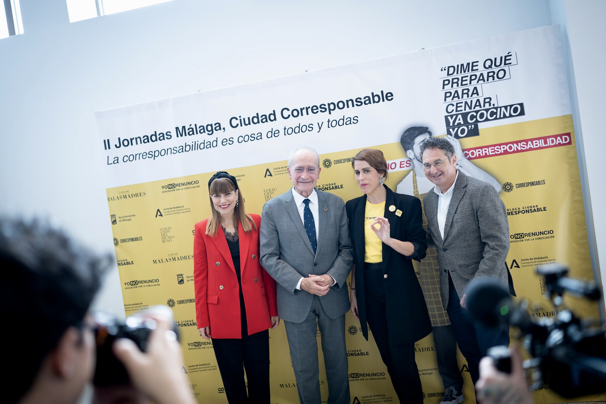 El alcalde de Málaga, Francisco de la Torre, acompañado por el concejal delegado de Derechos Sociales e Igualdad, Francisco Cantos, ha participado esta mañana en la II Jornada ‘Málaga Ciudad Corresponsable’, organizada por el Ayuntamiento y la Asociación Yo No Renuncio en el marco de las distintas acciones programadas este mes con motivo del Día Internacional de la Mujer (8M) y dentro de las acciones promovidas por el Consistorio en colaboración con la Junta de Andalucía para trabajar en la puesta en marcha de acciones y medidas que fomenten la conciliación familiar real y el reparto de tareas domésticas y familiares.