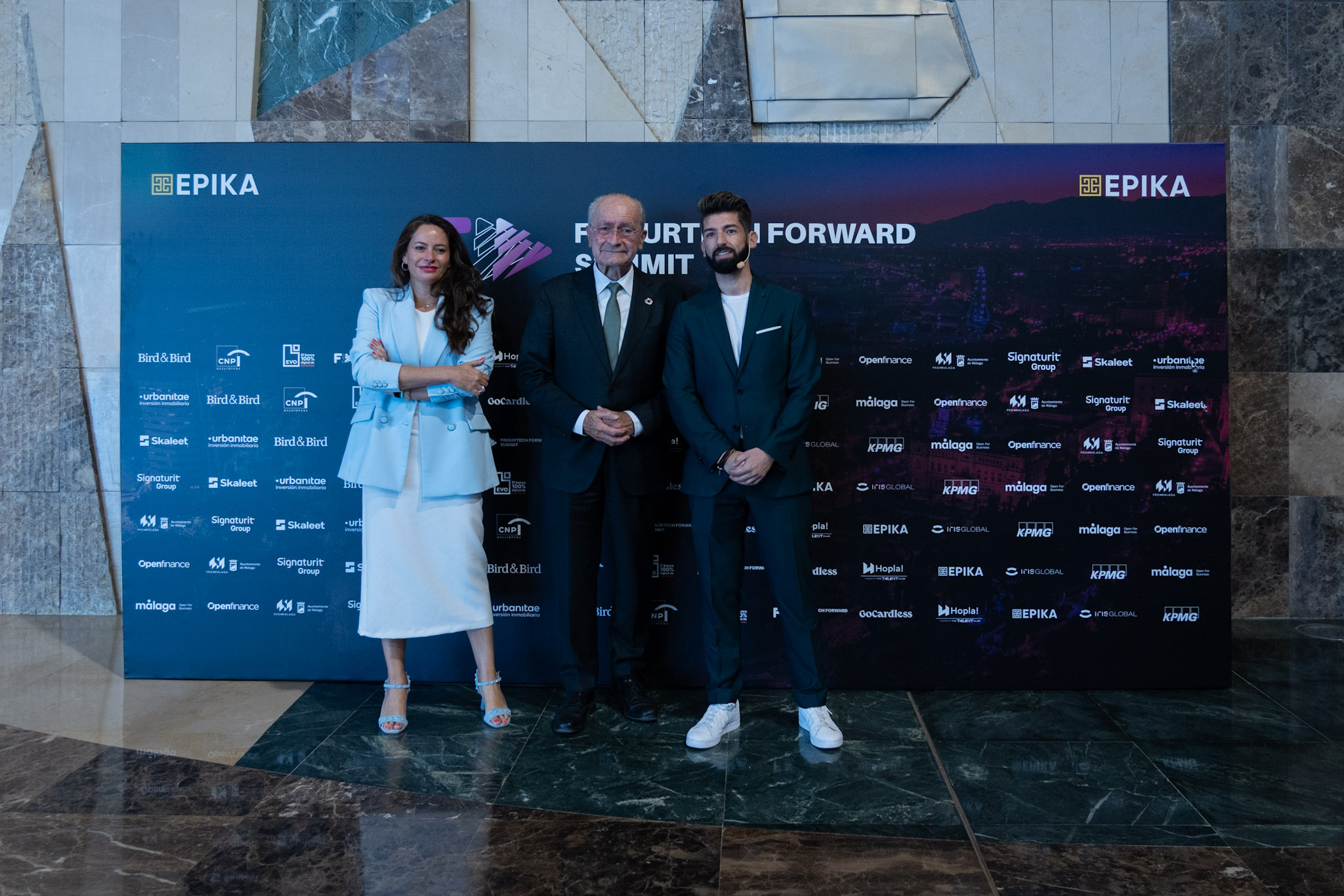 El alcalde de Málaga, Francisco de la Torre, junto a la concejala delegada de Innovación, Digitalización y Captación de Inversiones, Alicia Izquierdo, y al CEO de Epika Comunicación, Jaime Botín, ha asistido esta mañana a la apertura de la segunda edición de ‘Finsurtech Forward Summit’ (FFS), encuentro del ecosistema fintech e insurtech que se celebra hoy en el Palacio de Ferias y Congresos de Málaga (Fycma). Está previsto que congregue en torno a 380 profesionales y cuenta con 50 speakers procedentes del sector financiero, tecnológico y emprendedor para abordar los cambios que vienen en la forma de ofrecer servicios financieros.