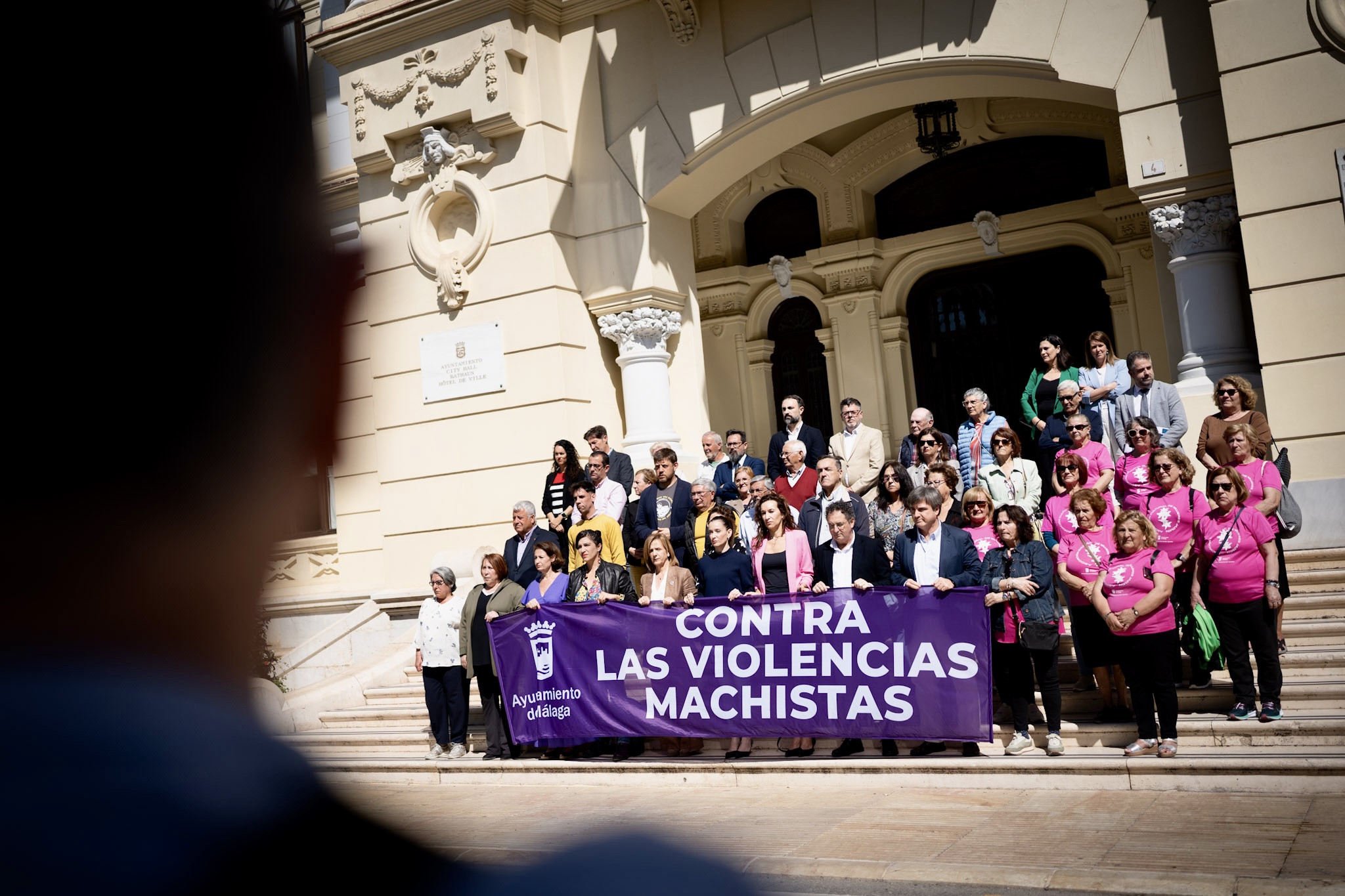 Ediles de la Corporación municipal han mantenido tres minutos de silencio en memoria de las últimas víctimas de la violencia machista confirmadas: una mujer y sus dos hijos menores en la provincia de Barcelona, un niño de cinco años en Girona y una mujer en Málaga. Ha sido este mediodía en las escaleras exteriores del edificio del Ayuntamiento.