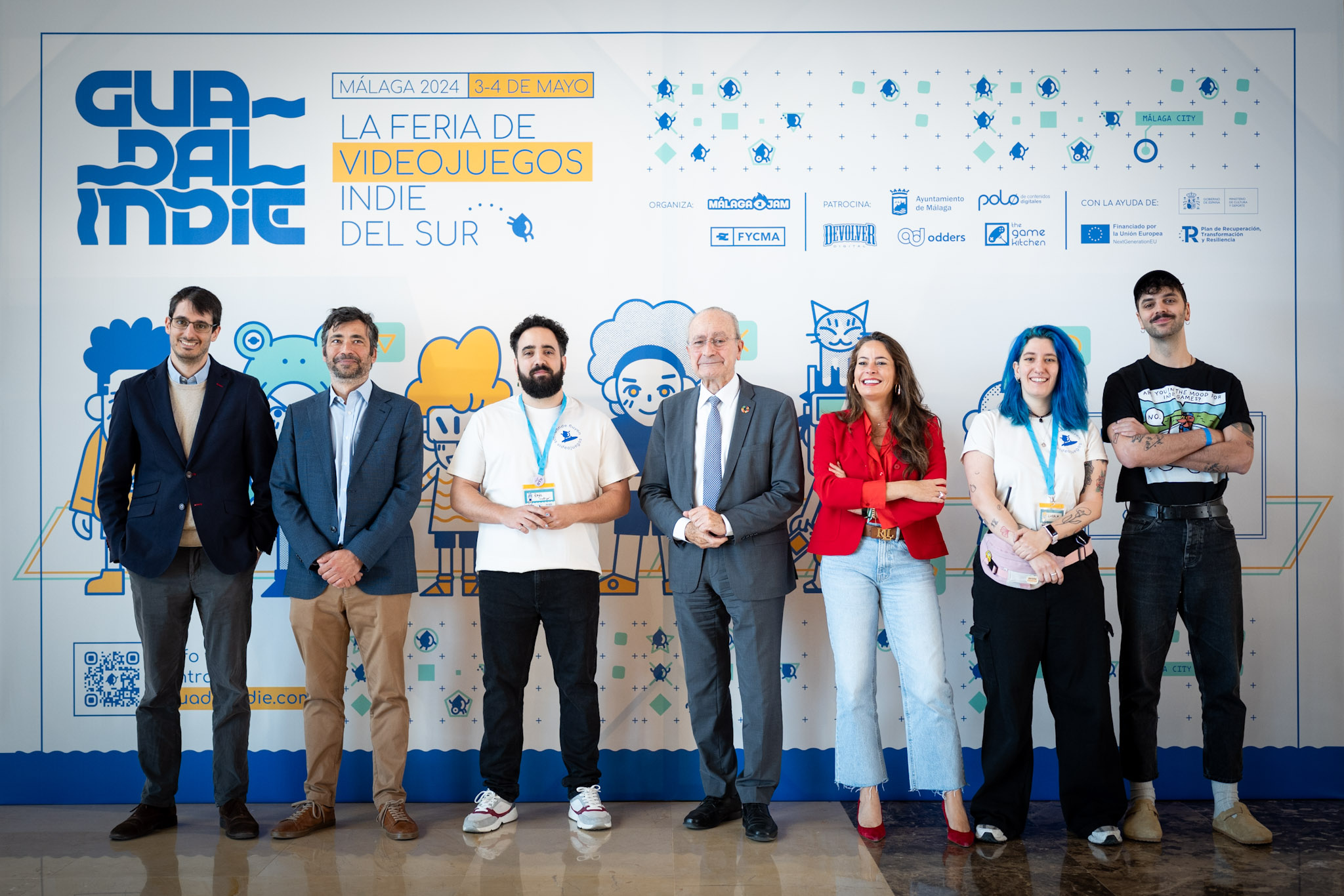 El alcalde de Málaga, Francisco de la Torre, junto a la concejala delegada de Innovación, Digitalización y Captación de Inversiones, Alicia Izquierdo, y el director de la feria y vicepresidente de MálagaJam, Raúl López, ha visitado esta mañana ‘Guadalindie 2024’, feria de videojuegos independientes que se celebra en Fycma hoy y mañana.