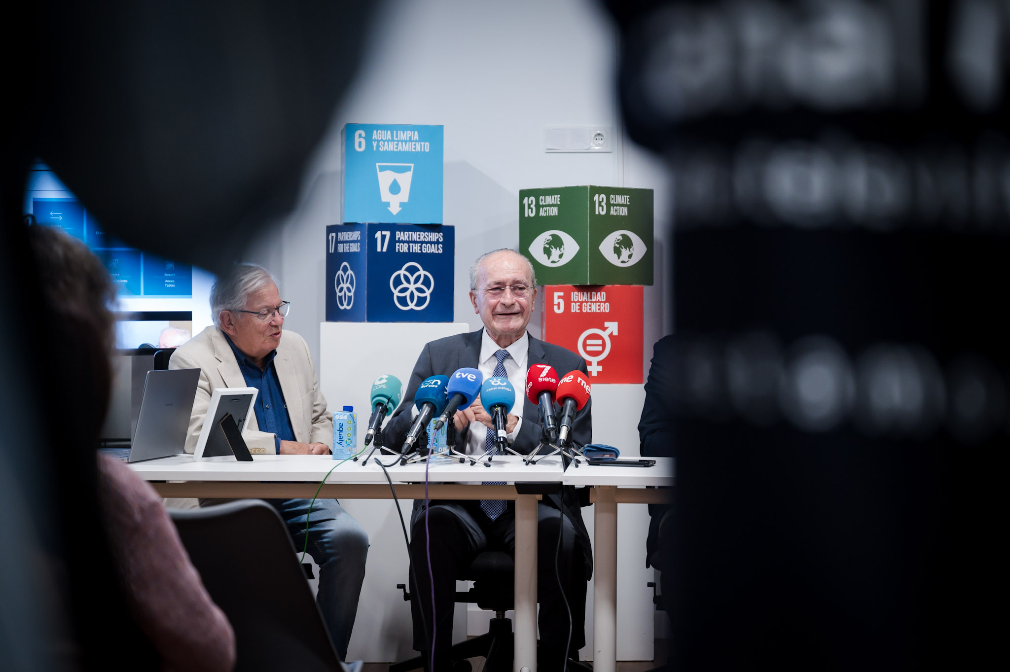 El alcalde de Málaga, Francisco de la Torre, ha asistido esta mañana j unto al presidente del Foro Periodista 2030, Fernando Jáuregui, a la jornada ‘Los cambios en la pirámide poblacional y sus consecuencias’, organizada por el Foro Periodista 2030 junto a Cifal y Unitar, en el Hospital Noble.